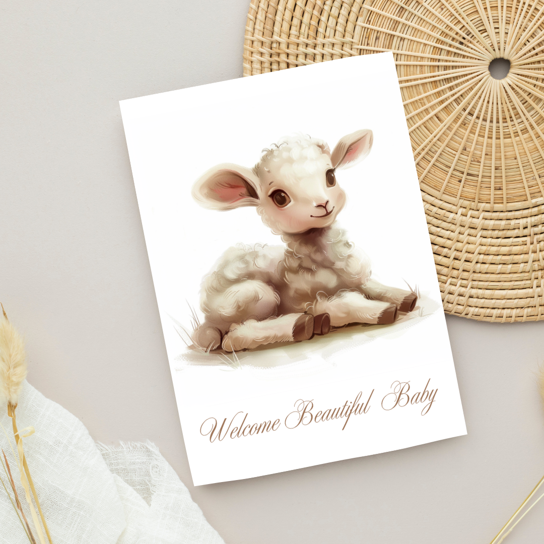 Blank A5 Animal Printable Lamb Welcome Baby Card - Printable Card