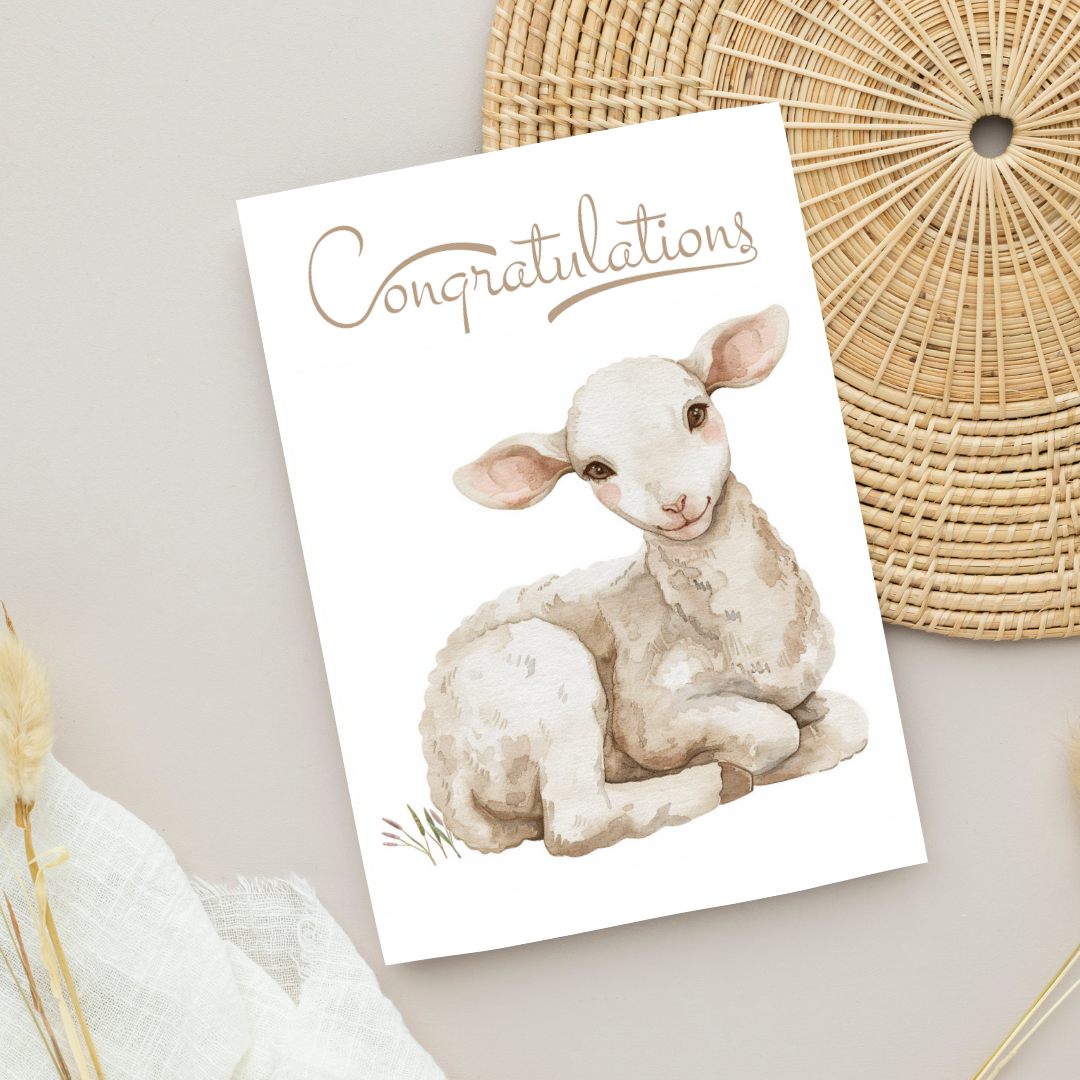 Blank A5 'Congratulations' Printable Baby Lamb Card - Printable Card