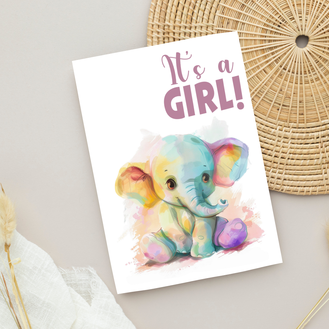 Blank A5 Cute Pastel Watercolor Inspired 'It's a Girl' Celebration Card - Printable Card
