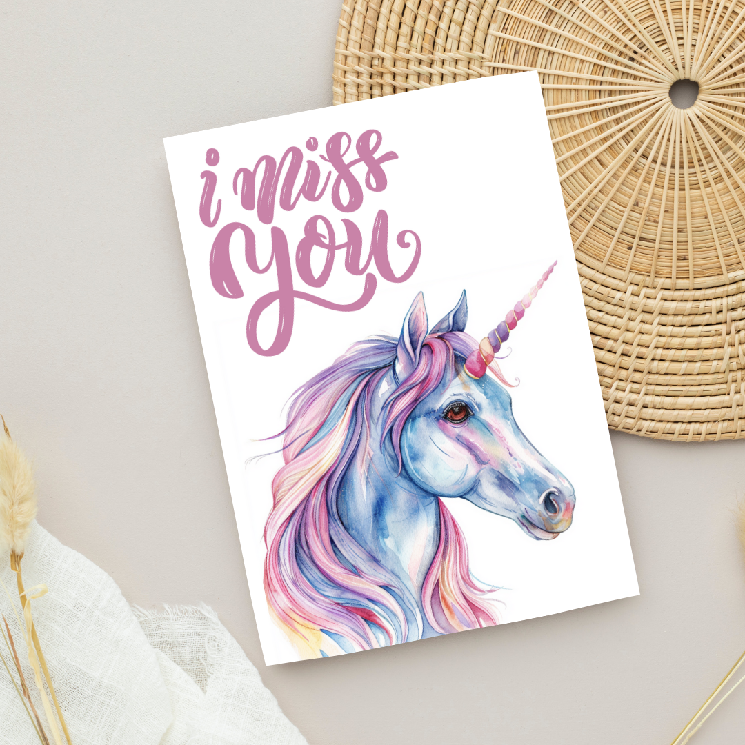 Blank A5 'I Miss You' Printable Unicorn Card - Printable Card
