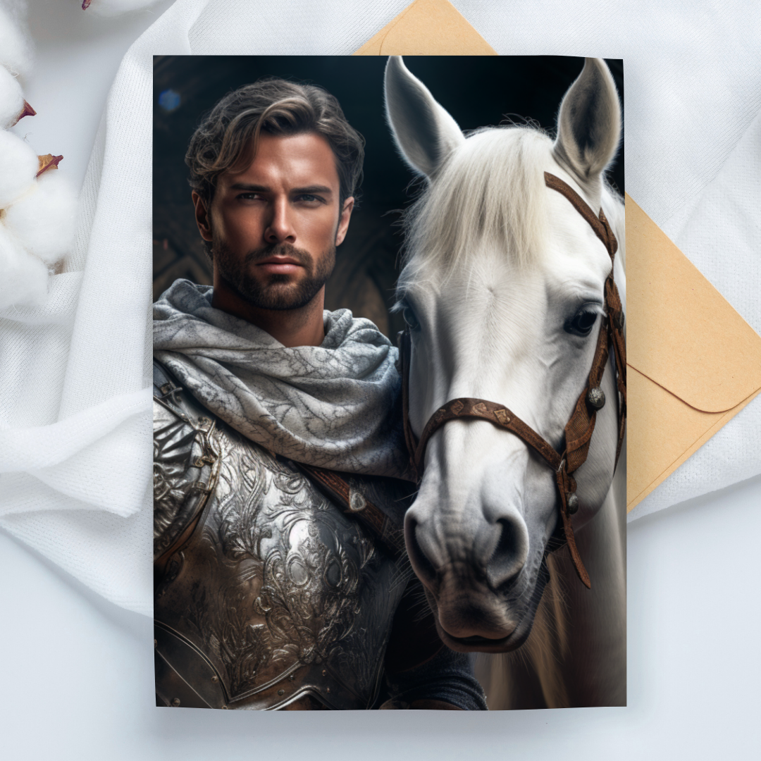 Knight in Shining Armour & White Steed - A5 Printable Card