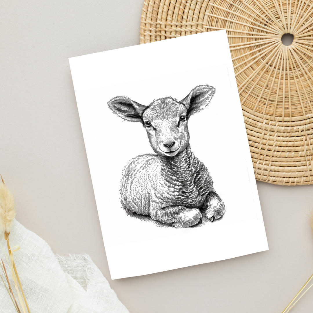 Blank A5 Printable Black & White Lamb Card - Printable Card