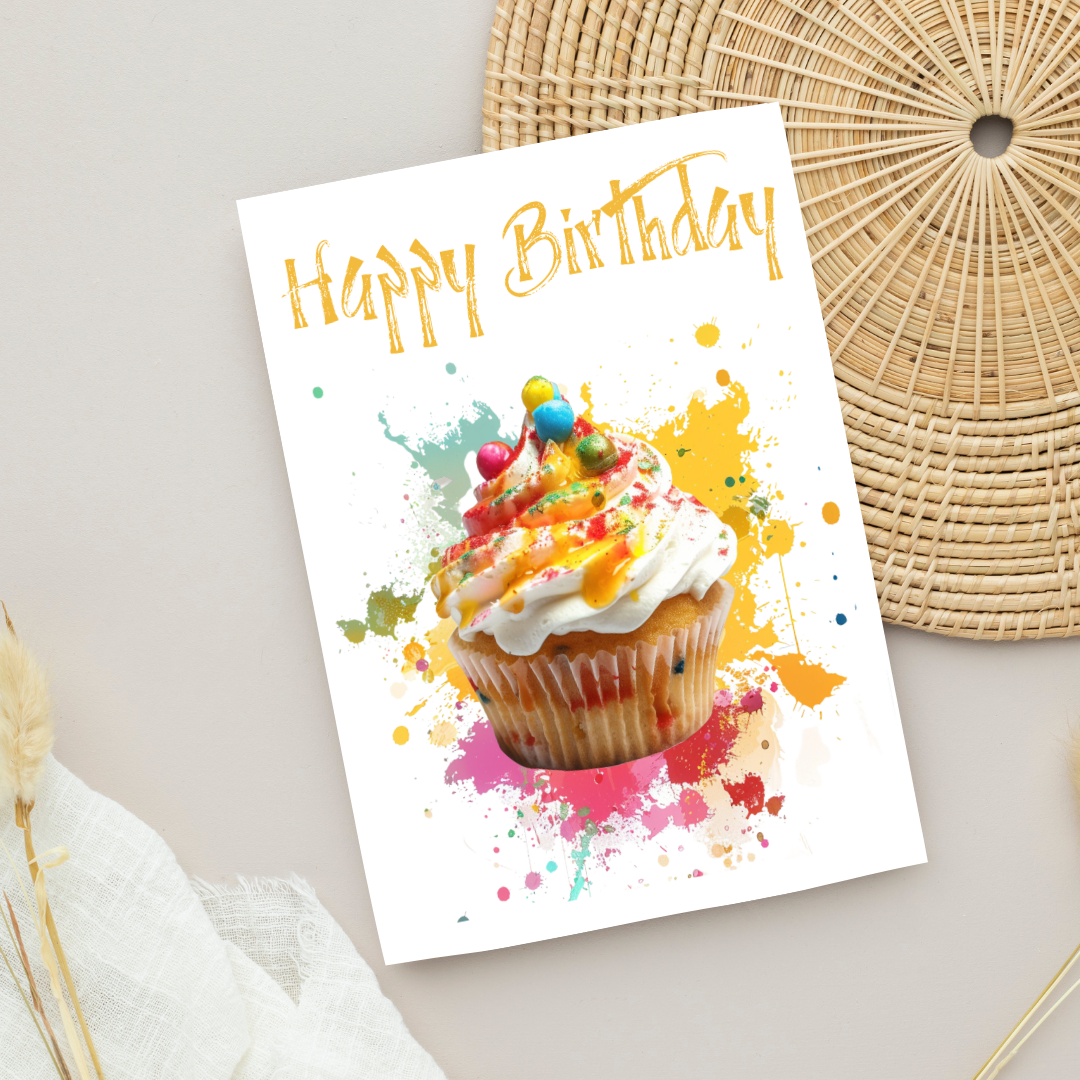 Blank A5 Printable Happy Birthday Cupcake Card - Pop Art Inspired Printable Card