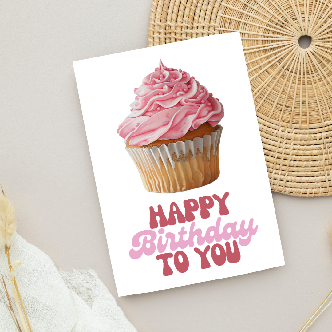 Blank A5 Printable Happy Birthday Cupcake Card - Retro Inspired Printable Card