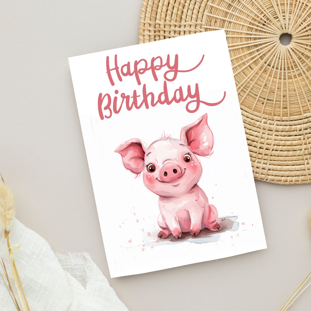 Blank A5 Printable 'Happy Birthday' Cute Piglet Card - Printable Card