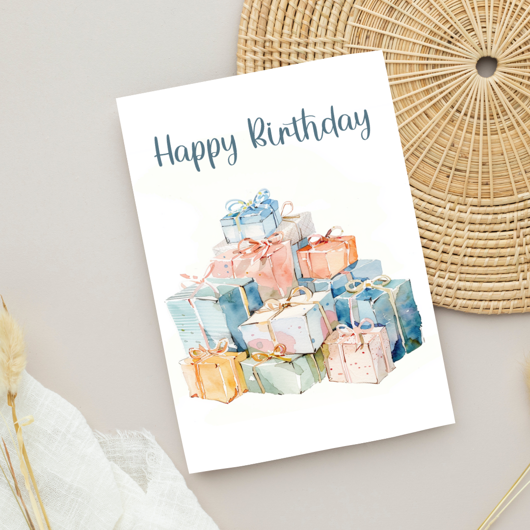 Blank A5 Printable Happy Birthday Presents Card - Printable Card