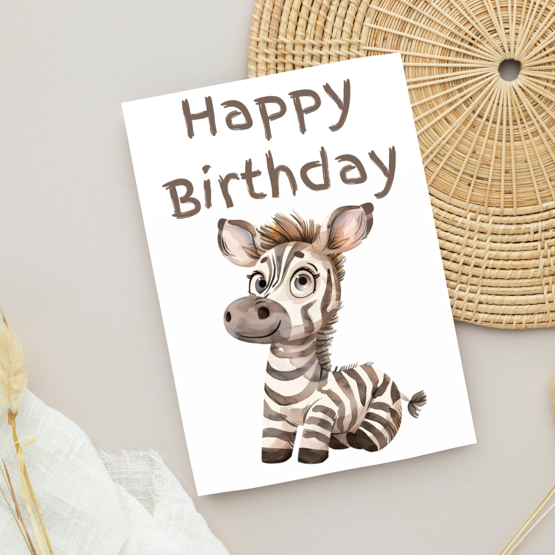 Blank A5 Printable 'Happy Birthday' Zebra Card - Printable Card
