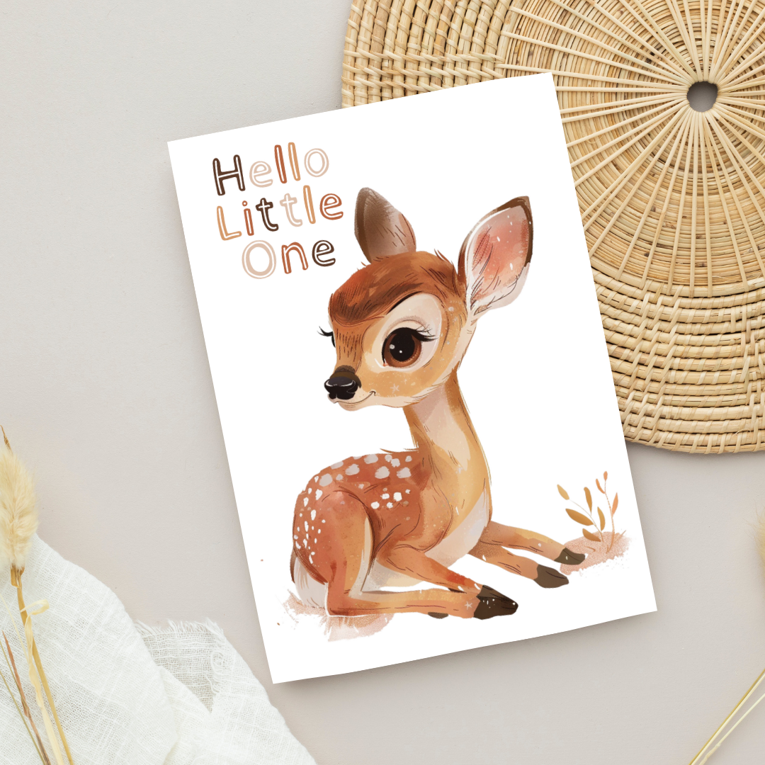 Blank A5 Printable Welcome Baby Fawn Card - Printable Card