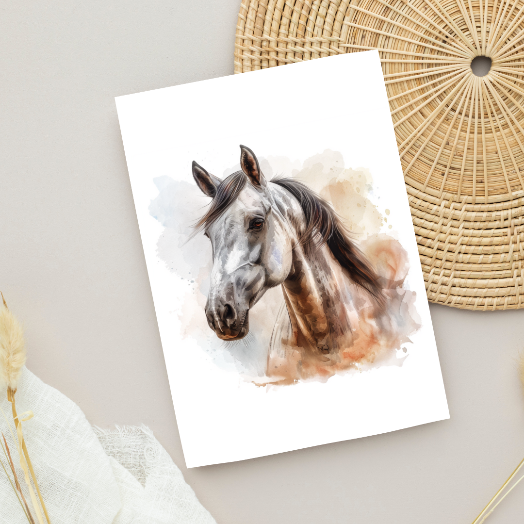 Blank A5 Watercolor Inspired Horse Card - Printable Card
