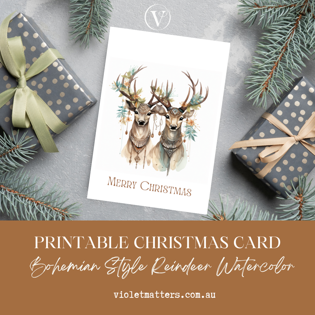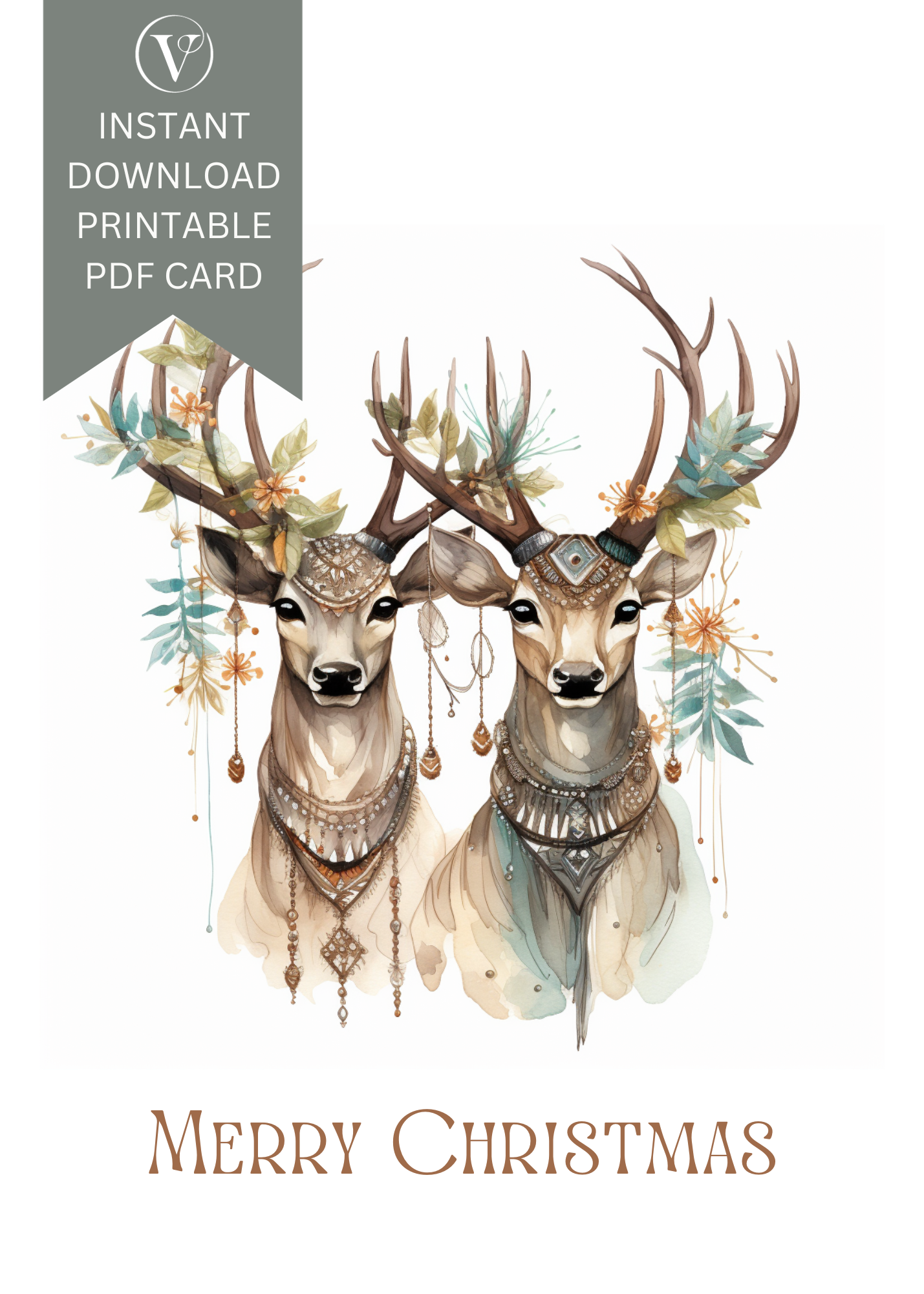 Evoke the free-spirited charm of bohemian style with our Bohemian Christmas Card. Our printable cards have been designed with value and convenience in mind. After purchase, download, print and you are ready to go. Our printable cards are made using a fusion of cutting-edge AI technology and our imagination and creative visions. Our cards are unique and original images created by us in our Adelaide studio. Please do not copy, they are intended for personal use only.
