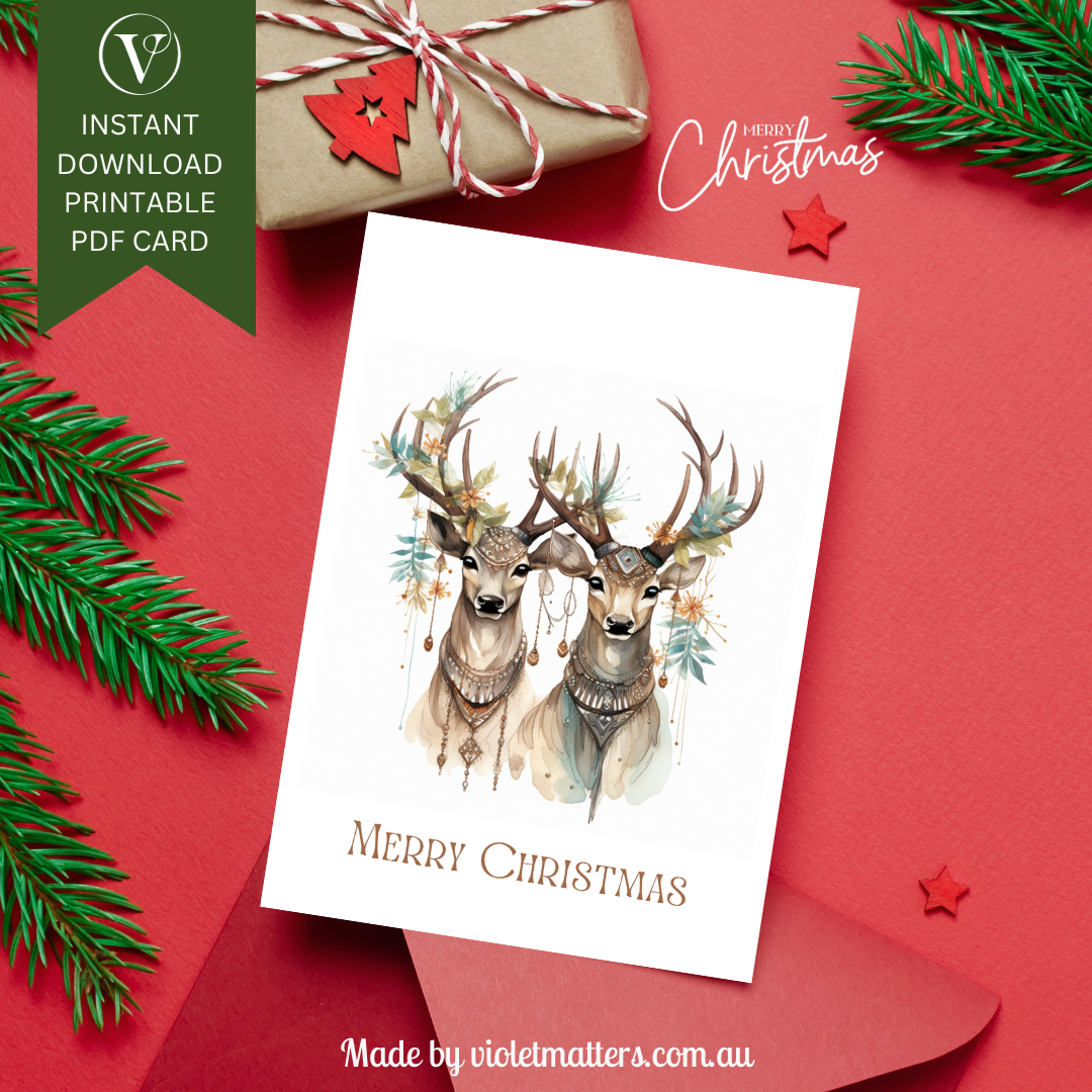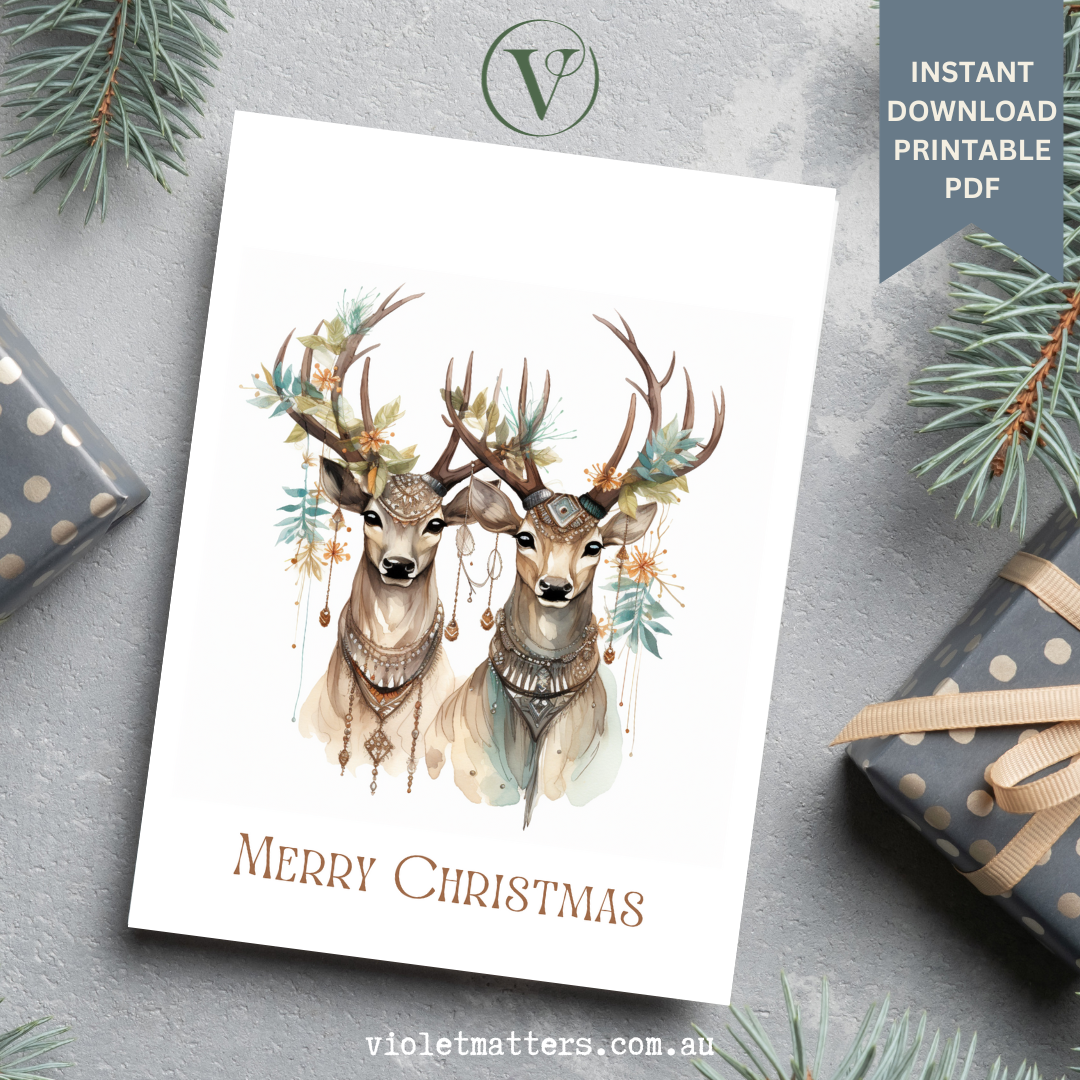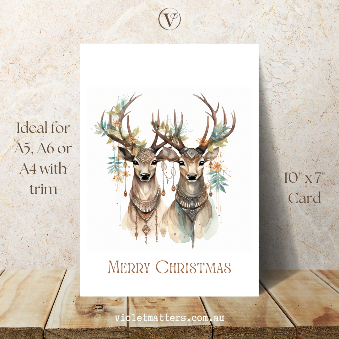 Stylish Bohemian Style Reindeer Christmas A5 Card