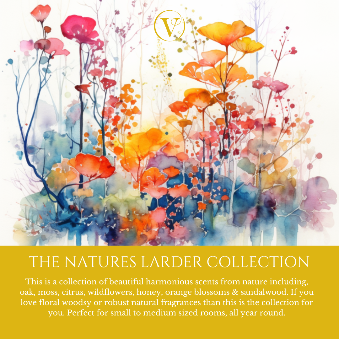 The signature Natures Larder Collection fragrance this is a captivating scent capturing the harmony of nature's wildflowers and the sweetness of honey. The delicate honey notes blend seamlessly with soft floral tones, creating a sweet and balanced bouquet with warm vanilla notes.