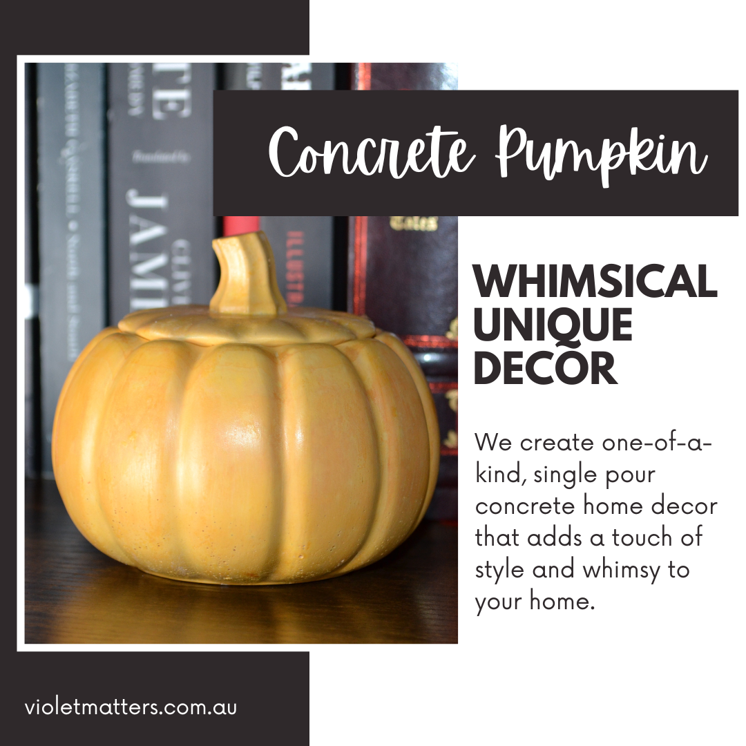 Add a whimsical autumn charm to your home with our handmade Hydrostone concrete pumpkins. Perfect for autumn, fall, winter, or Halloween décor, these versatile statement pieces are suitable for year-round display. Each pumpkin is carefully hand-mixed and hand-poured, ensuring a unique design with natural air bubbles and slight variations that enhance its character.