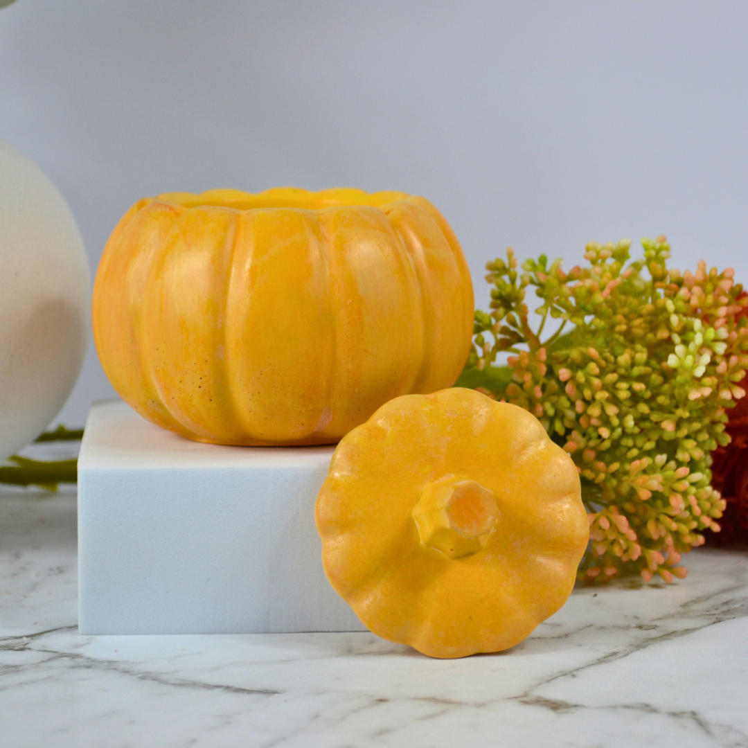 Material: Crafted from durable Hydrostone, these pumpkins are built to last while showcasing the natural beauty of handmade craftsmanship. Small air bubbles and slight imperfections are intentional features that add to their charm.