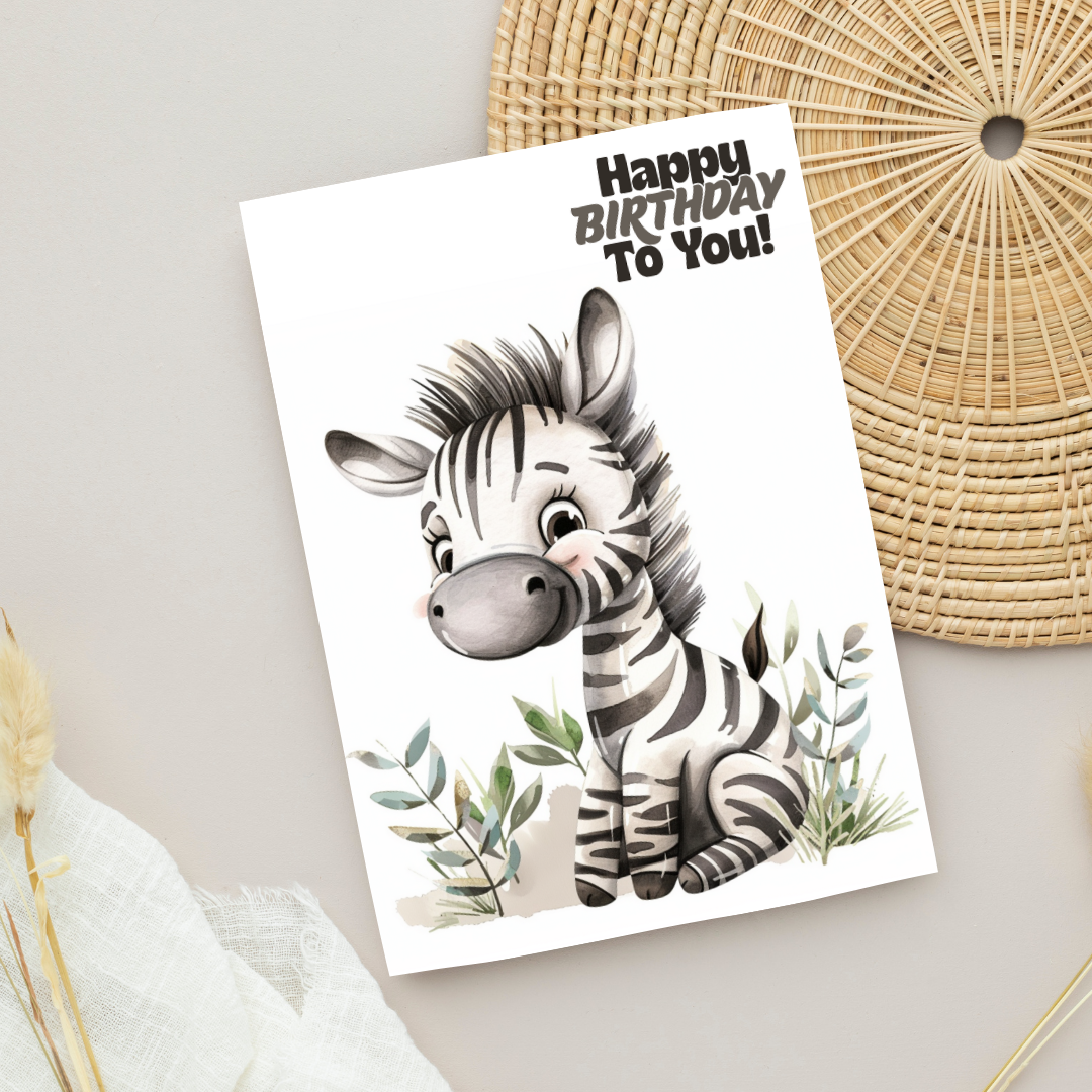 Cute Blank A5 'Happy Birthday To You' Printable Zebra Card - Printable Card