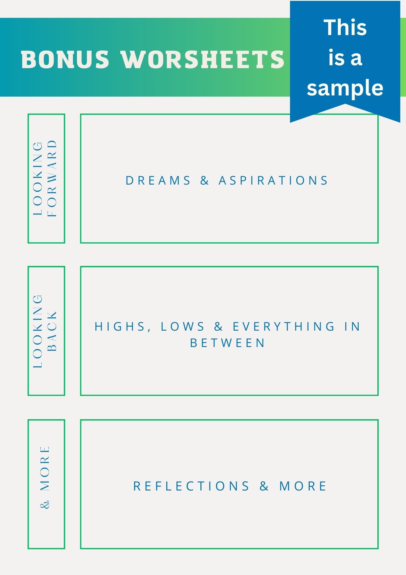 But that's not all! We've included some fantastic bonus attachments to enhance your experience. You'll find 'looking forward' and 'looking back' handouts to help you reflect on the season, a list of holiday excuse options for different situations to help navigate the busy social calendar, and a handpicked book list for cozy holiday reads.