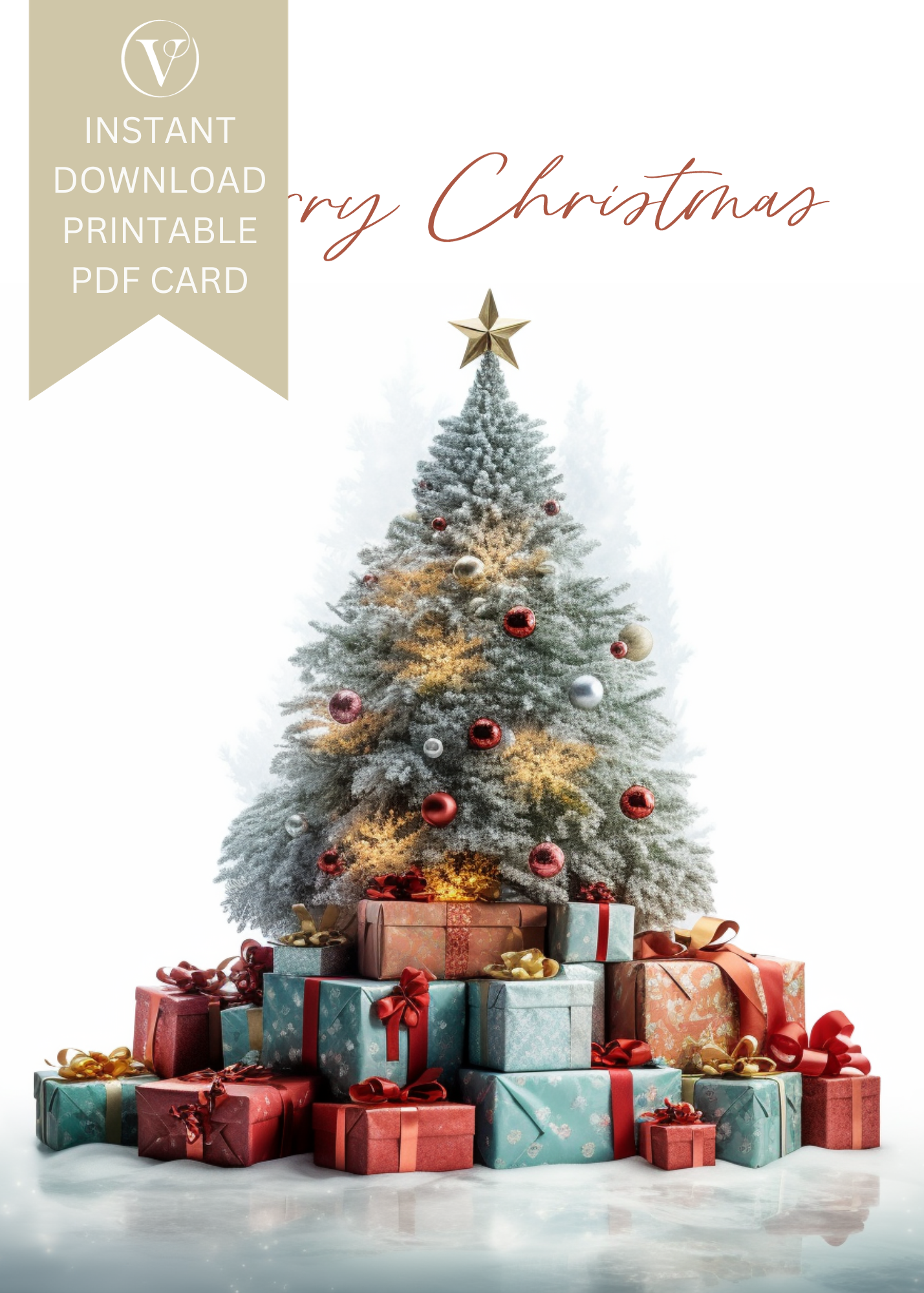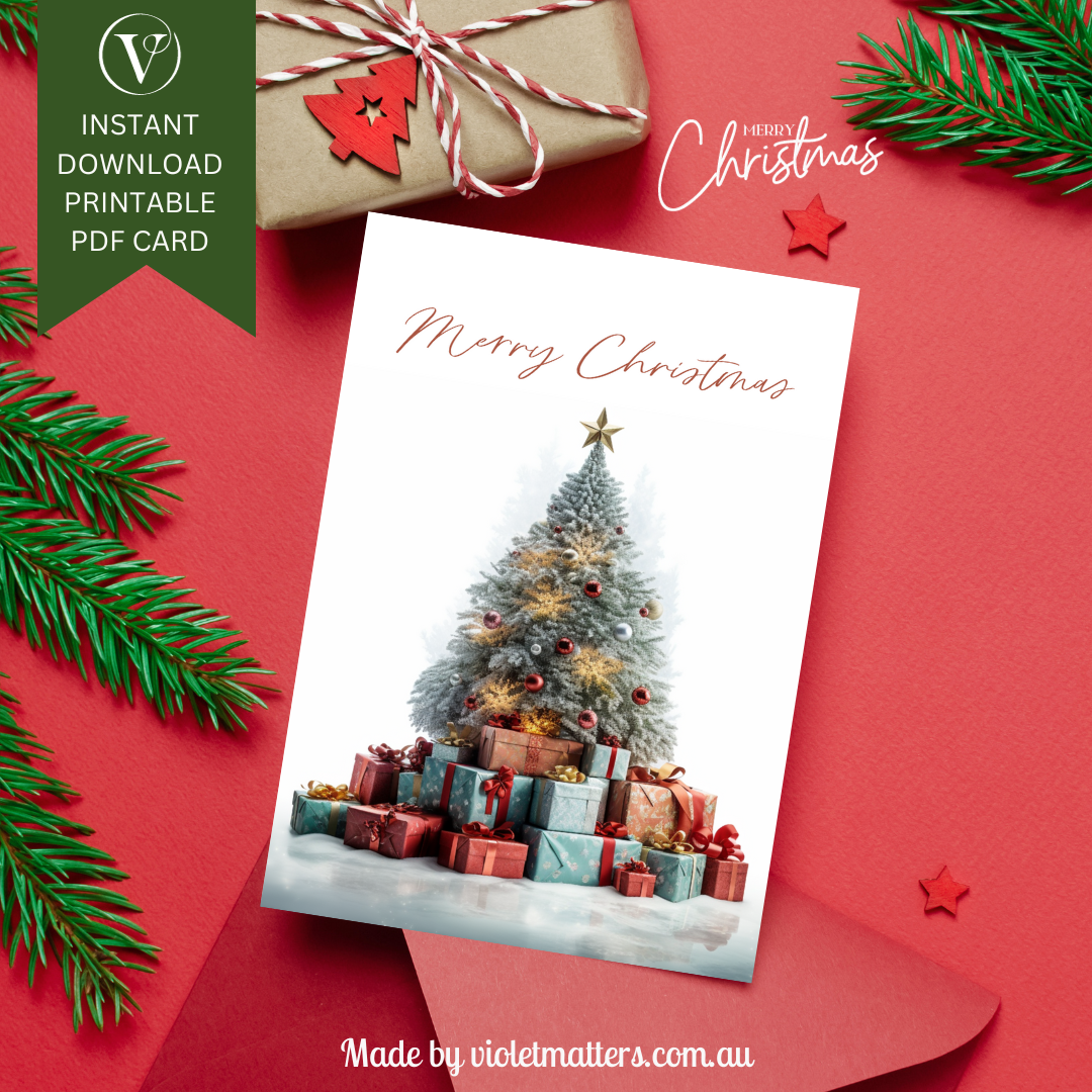 Nature Inspired Digital Printable Christmas Tree A5 Card