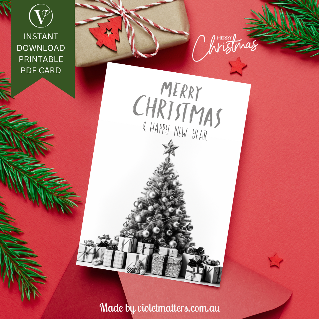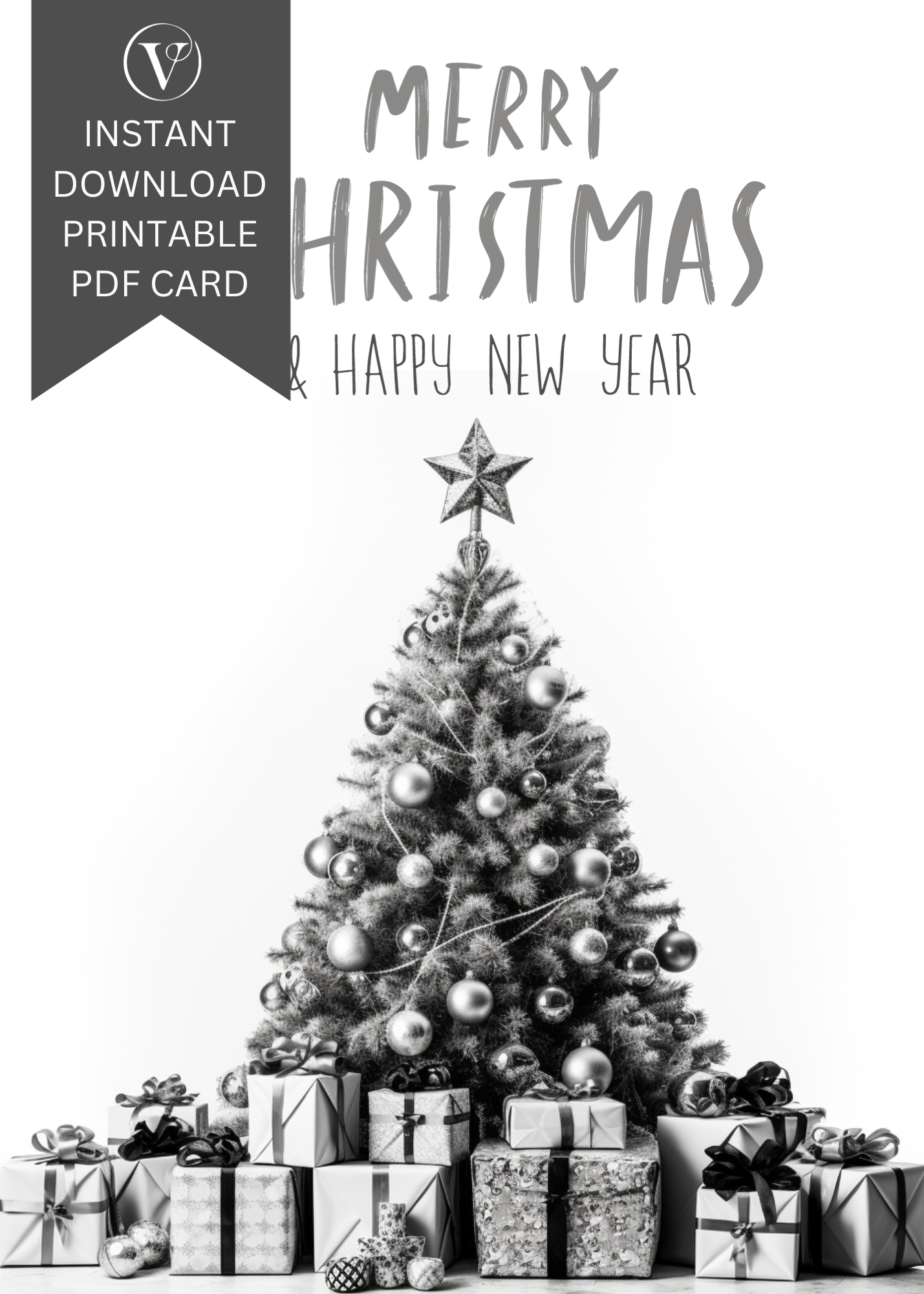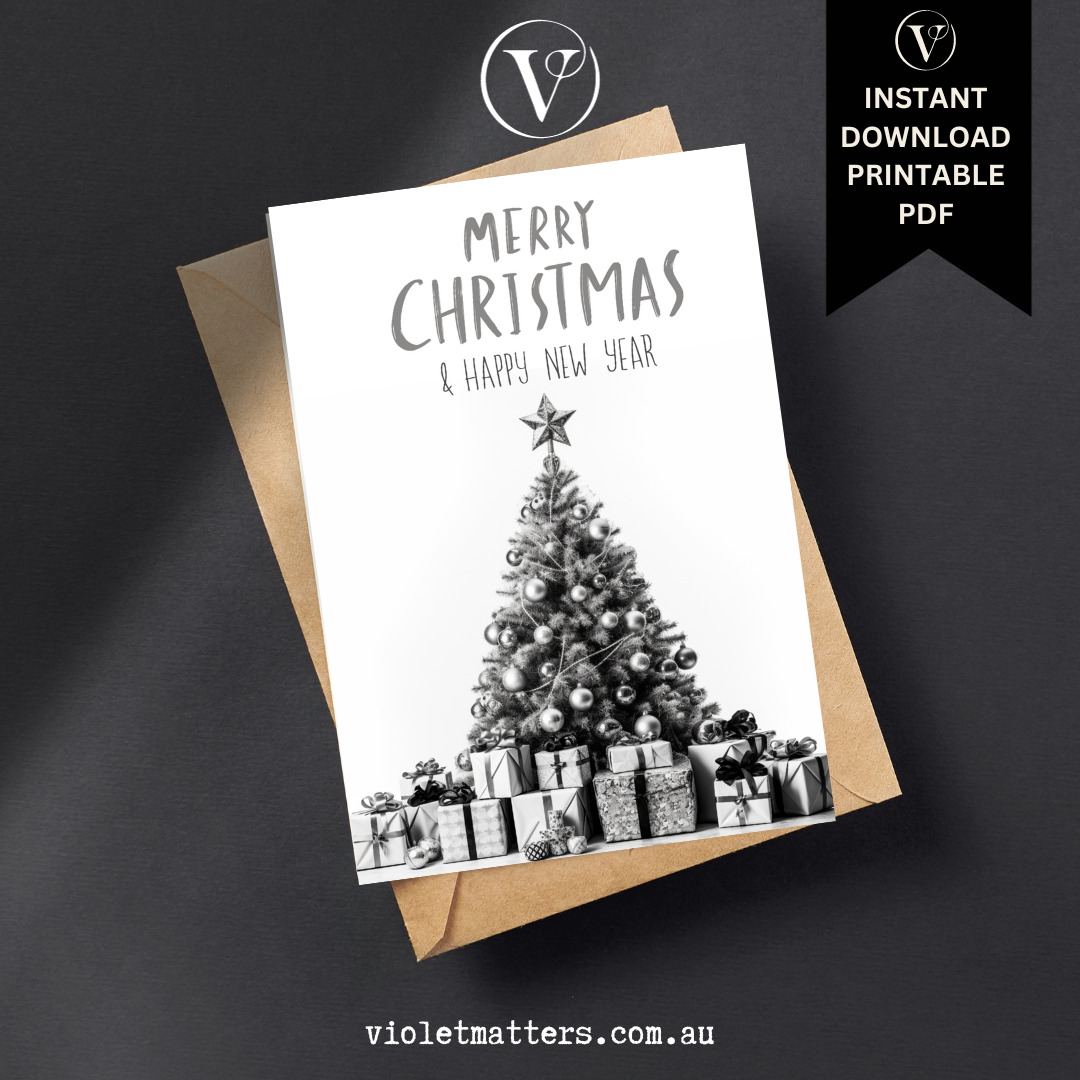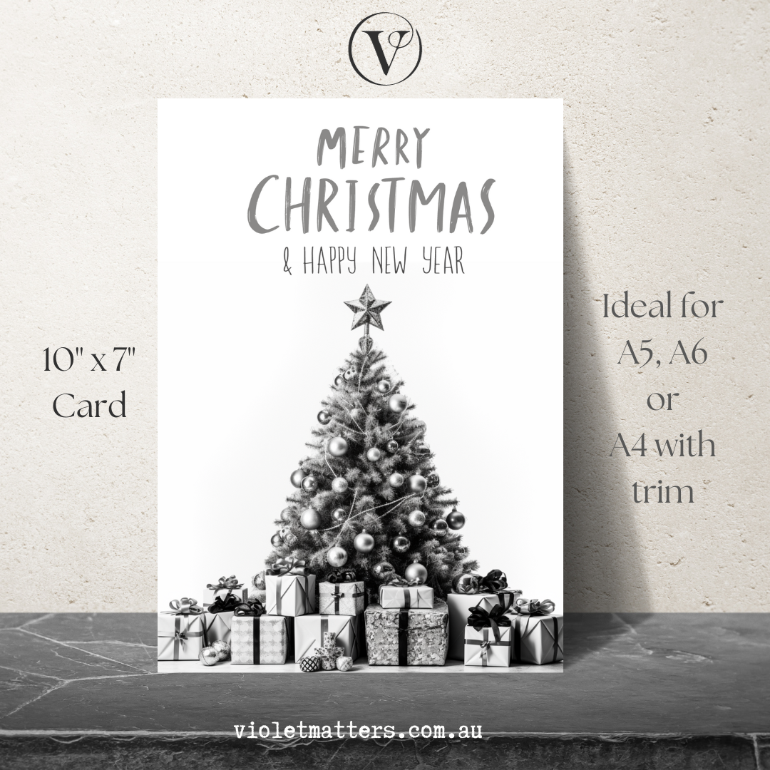 Unusual Digital Printable Monochrome Style Christmas Tree A5 Card