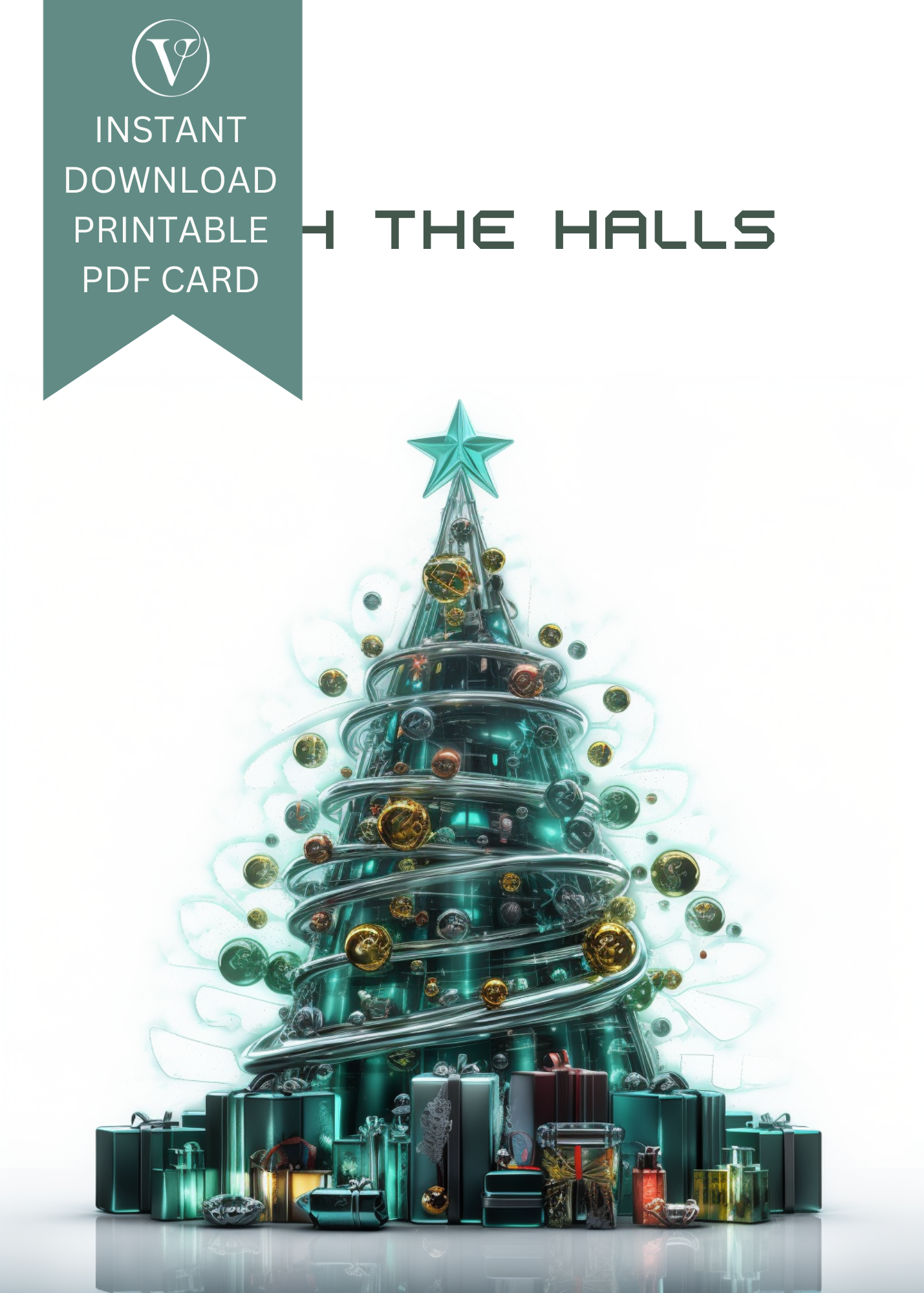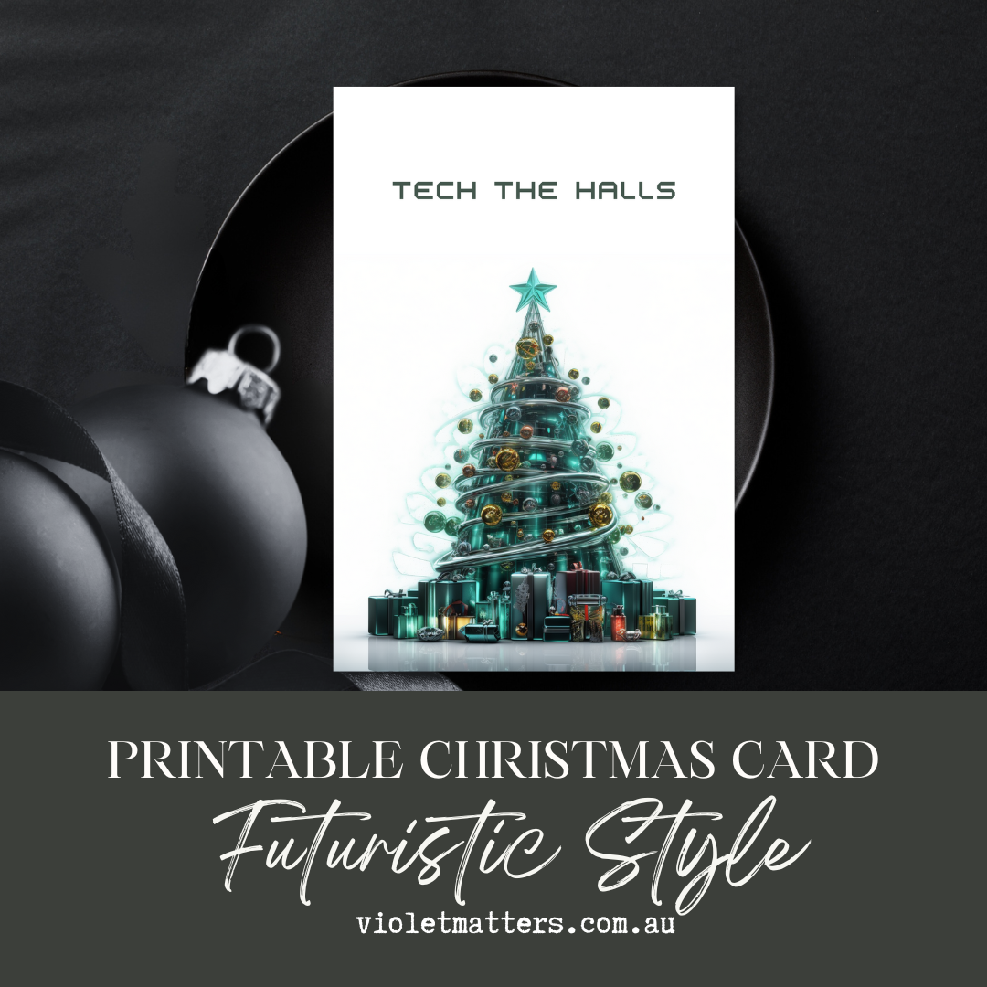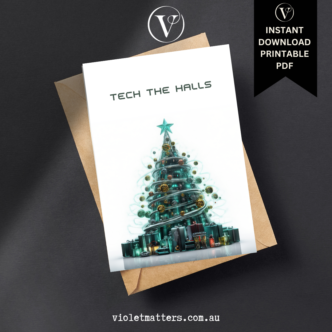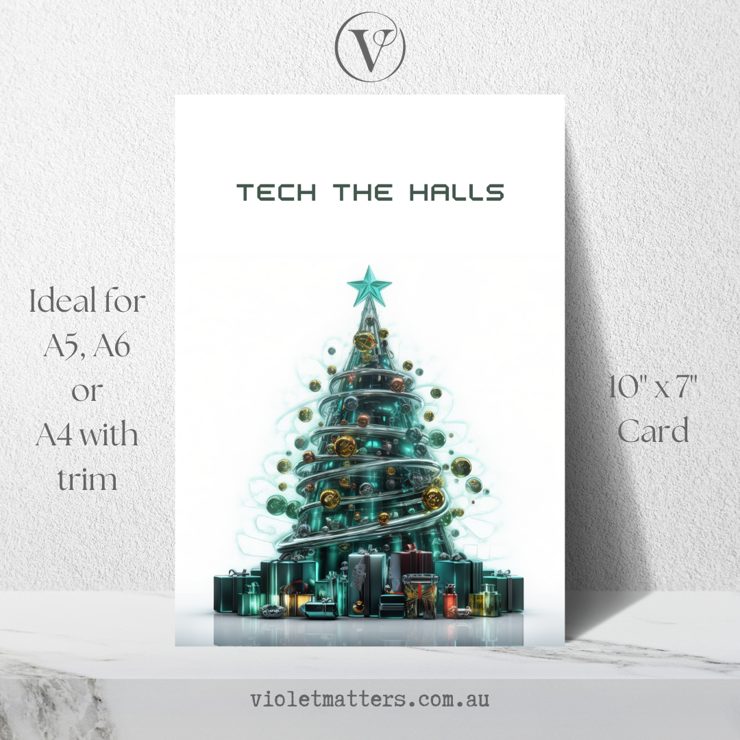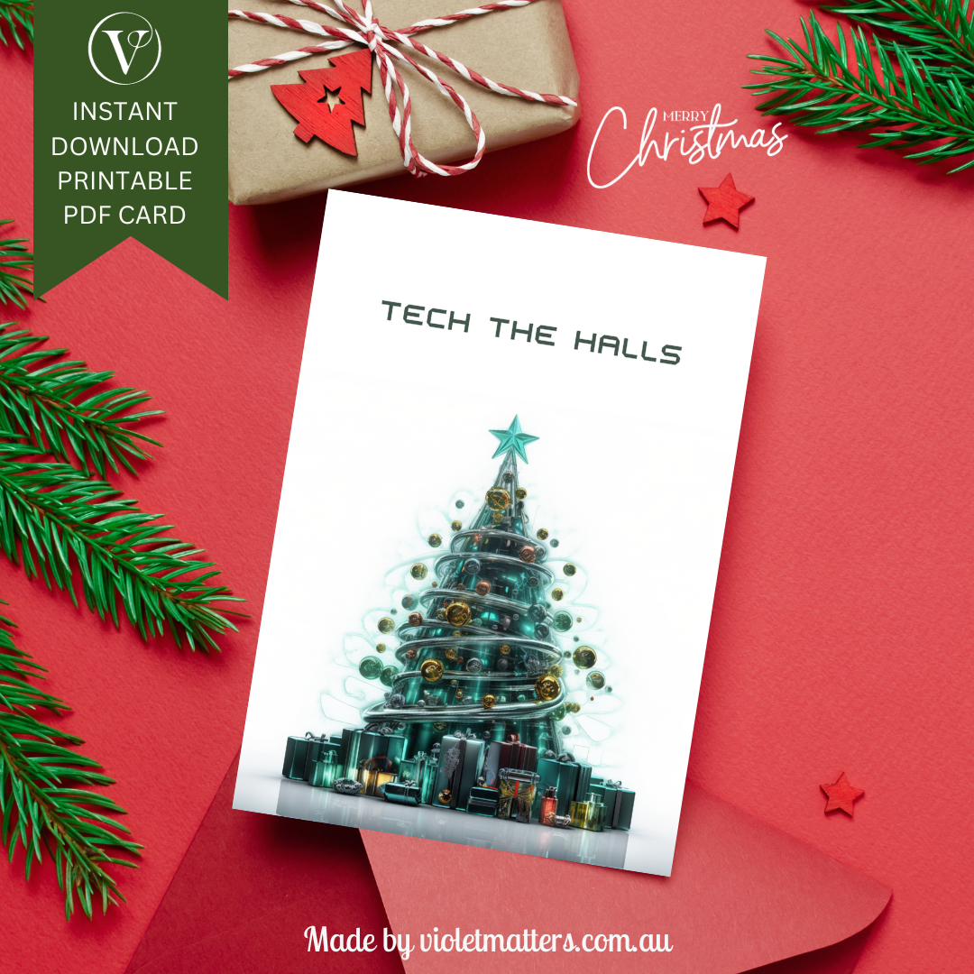 Futuristic Tech Style Printable Christmas Tree A5 Card