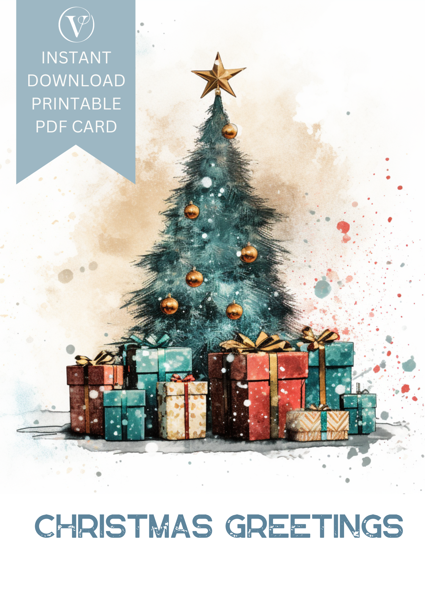 Grunge Style Printable Christmas A5 Card