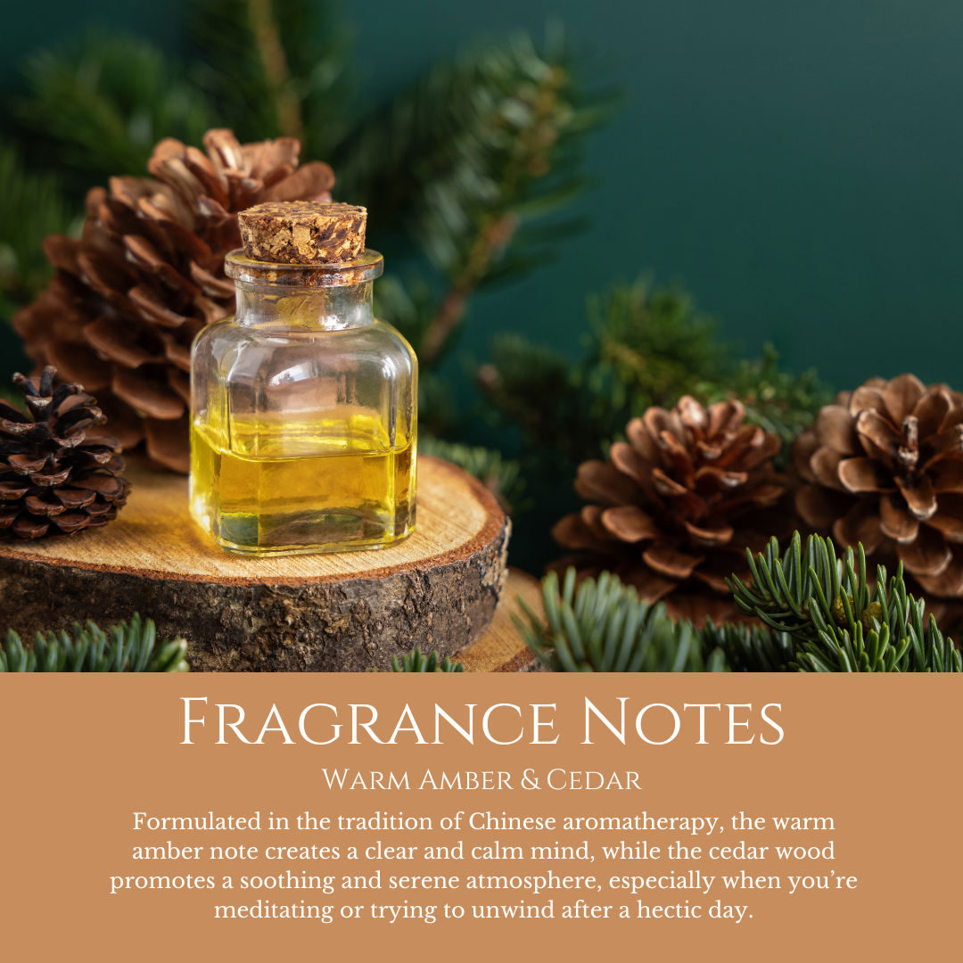 Formulated in the tradition of Chinese aromatherapy, the warm amber note creates a clear and calm mind, while the cedar wood promotes a soothing and serene atmosphere, especially when you’re meditating. This fragrance will clear your senses to give you a truly great experience.
