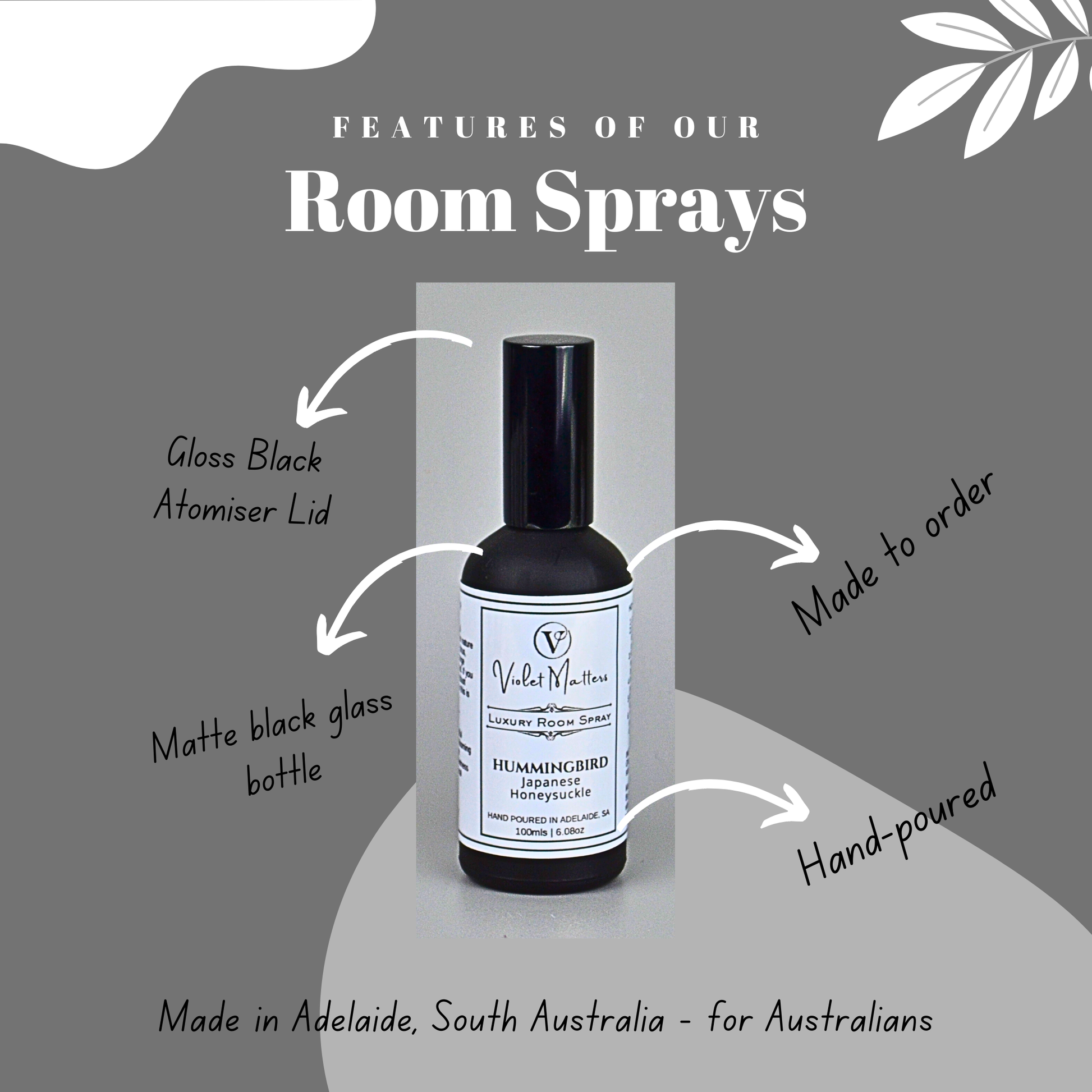 Our 100ml Room Sprays are designed to bring a touch of luxury to your living spaces. Each spray is hand poured in small batches in our Adelaide Studio. Our room sprays are carefully formulated with eco-friendly, biodegradable ingredients, ensuring they are free from harmful chemicals. Packaged in an elegant matte black glass bottle Β - please note that to save on packaging this product is carefully packed but does not come in box.