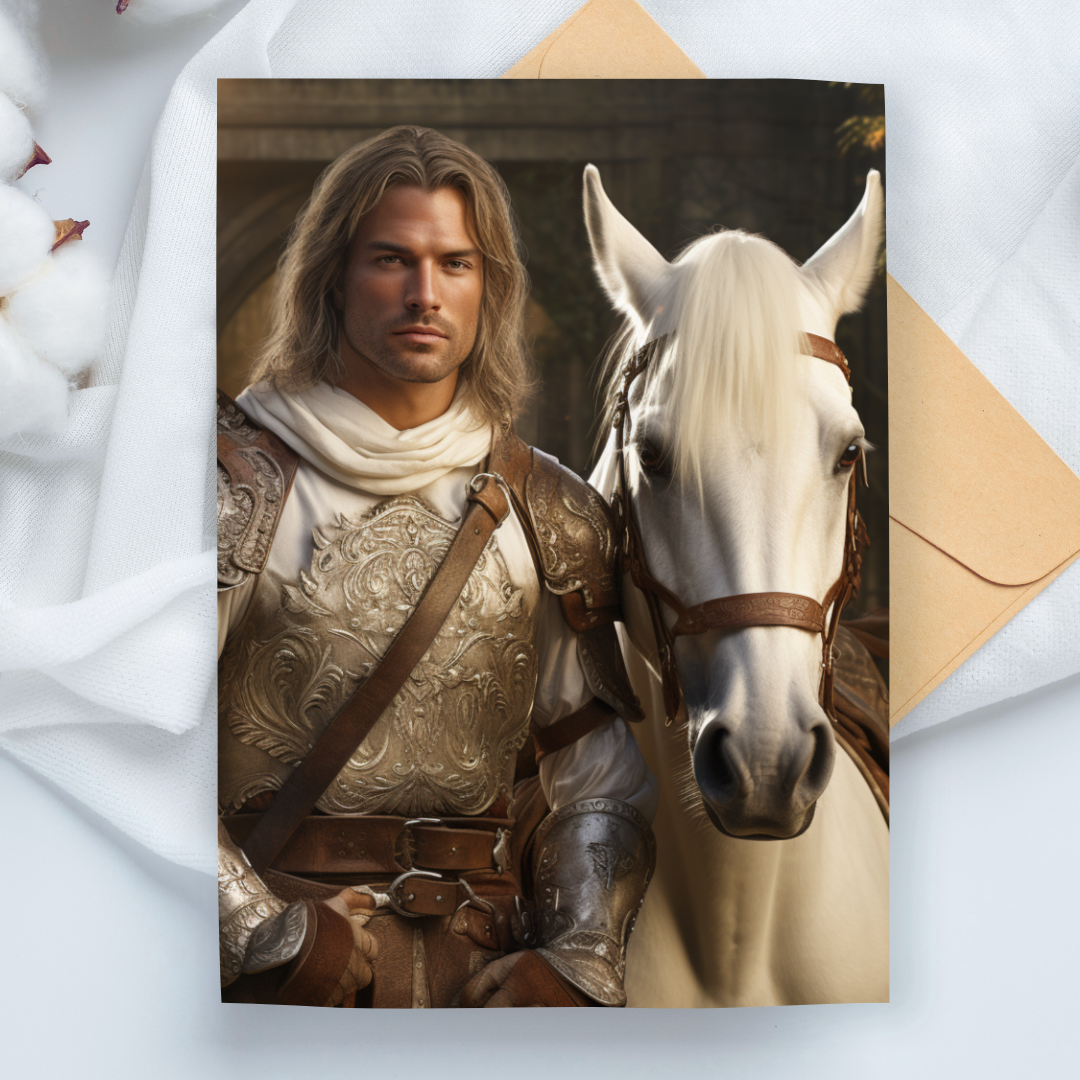 Knight in Shining Armour & White Steed - A5 Printable Card