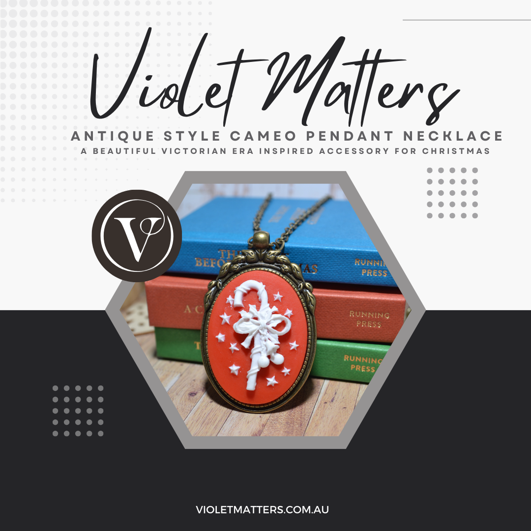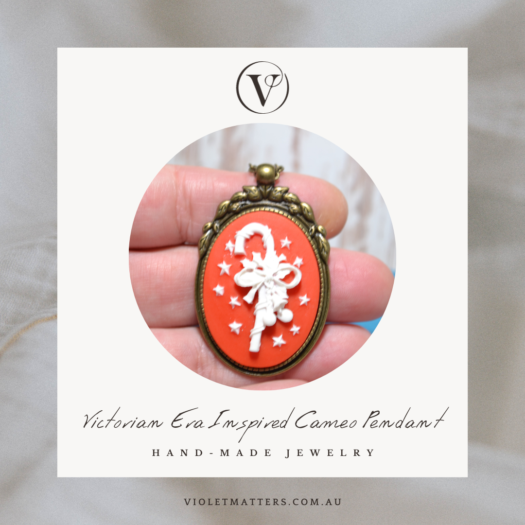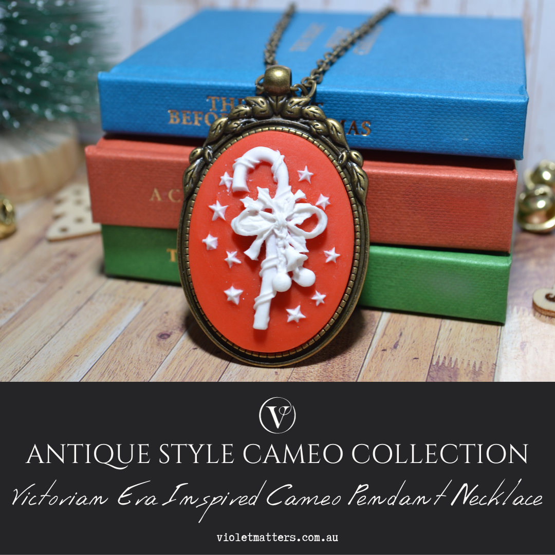 Limited Edition Antique Style Inspired Christmas Cameo Pendant - Candy Cane
