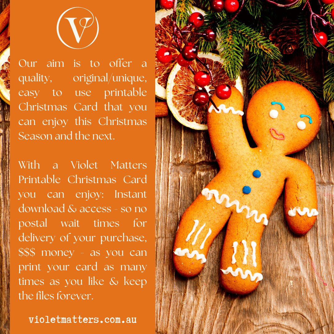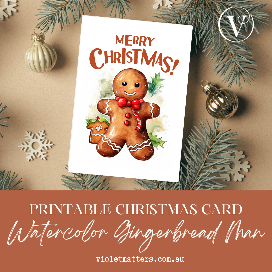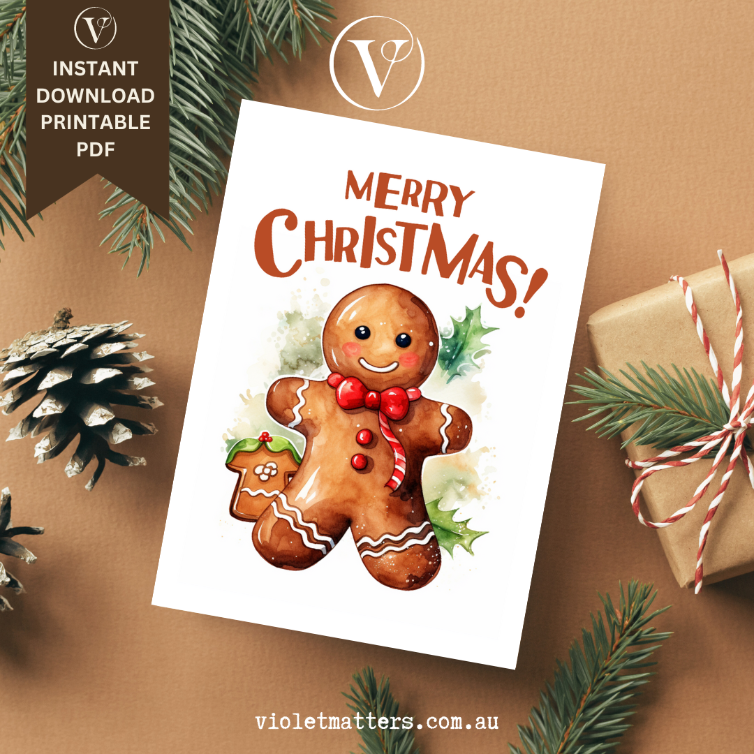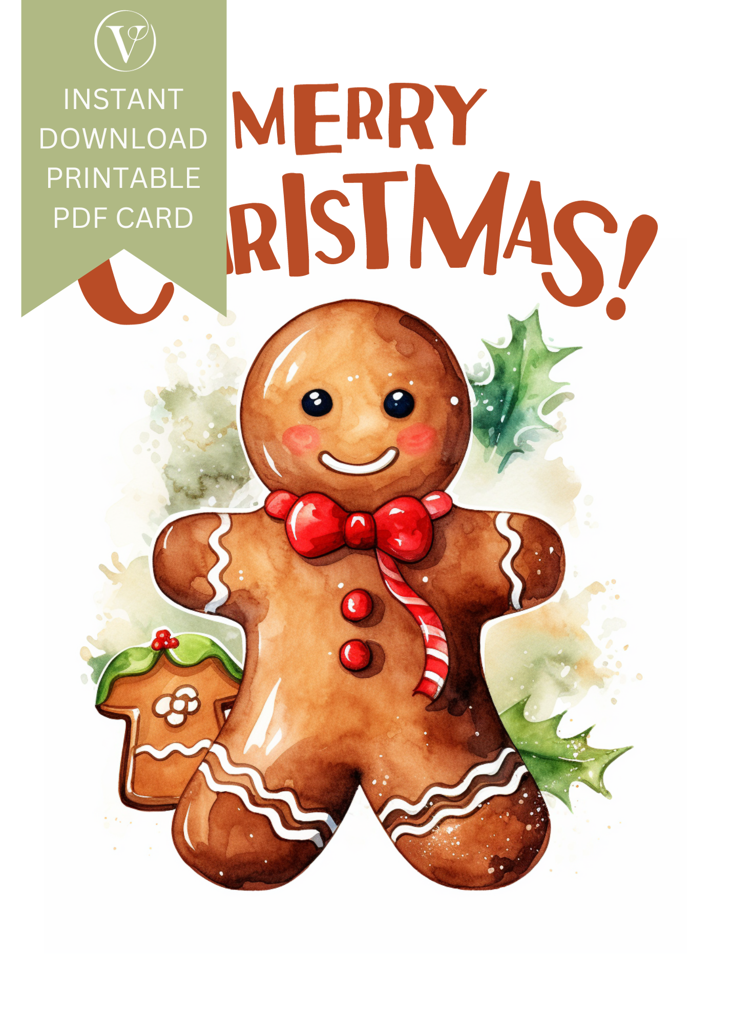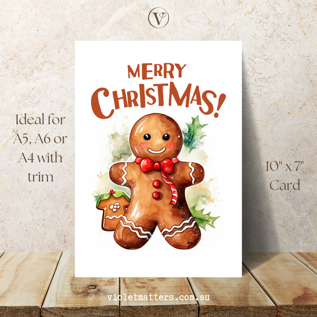 Merry Christmas Gingerbread Watercolor Printable Christmas Card A5 Size