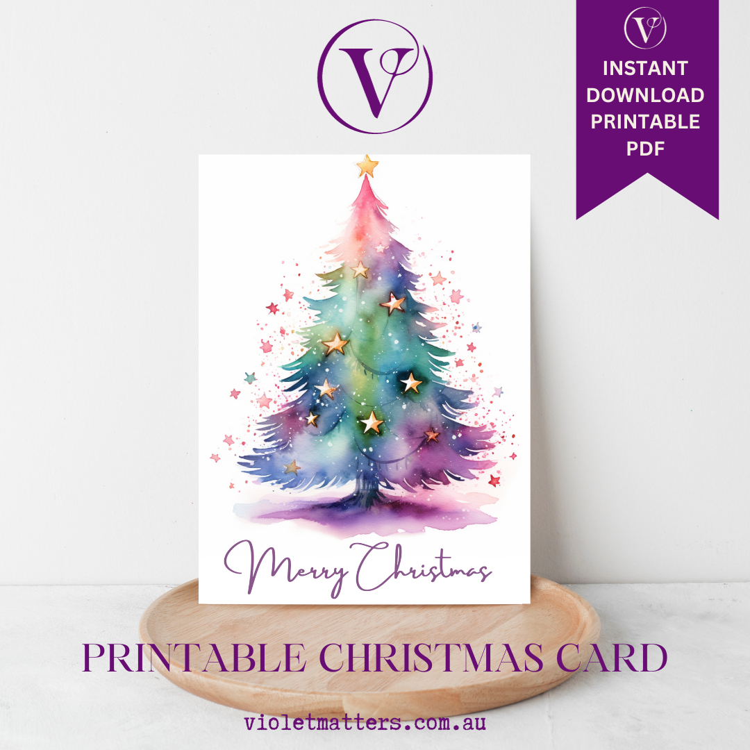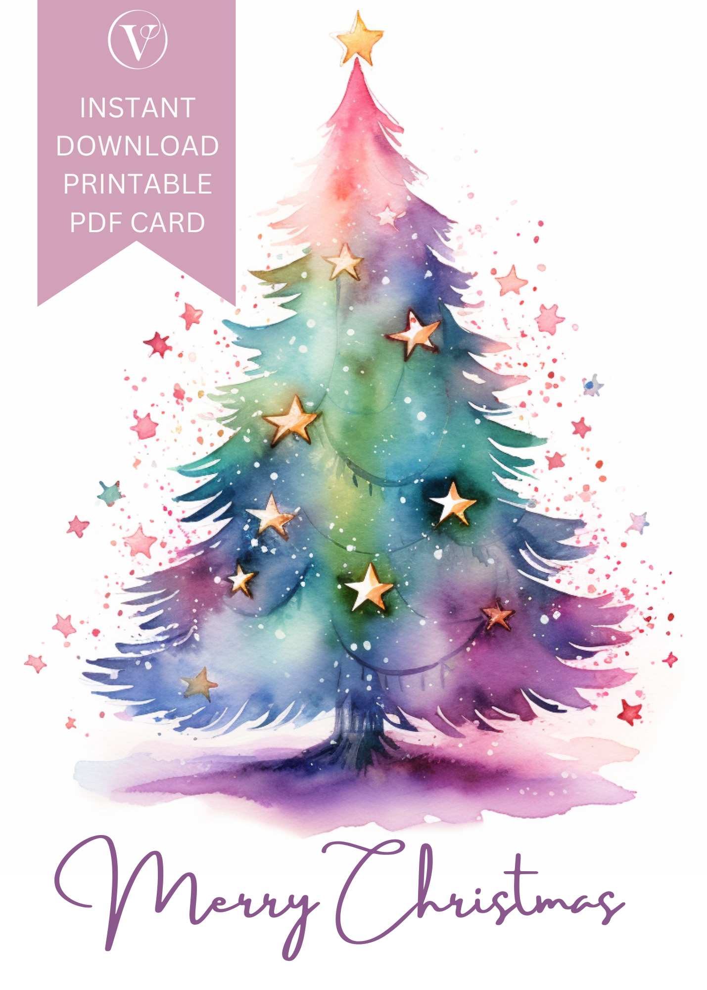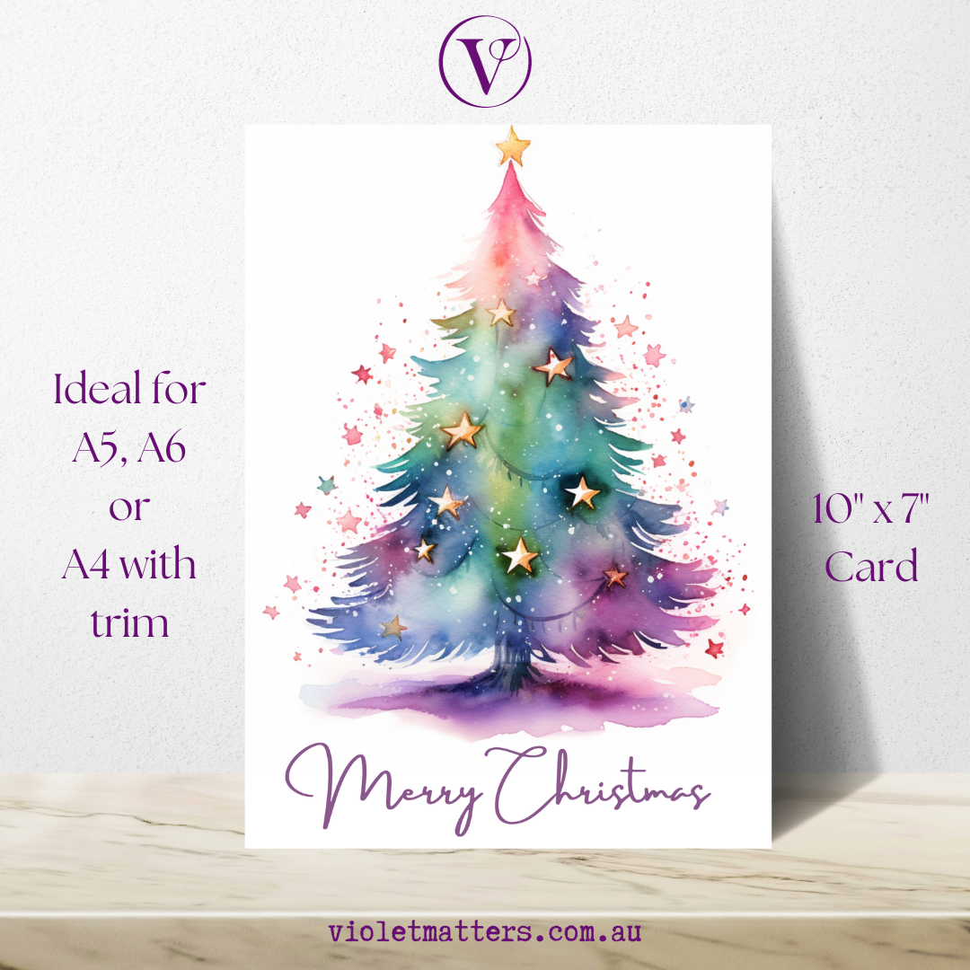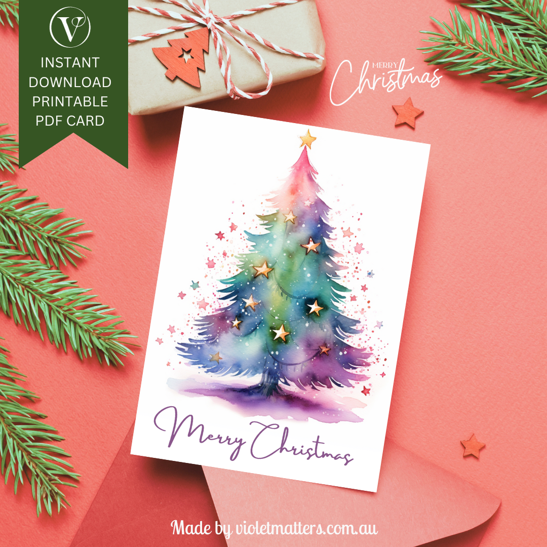 Enchanting Merry Christmas Watercolor Printable Christmas A5 Card