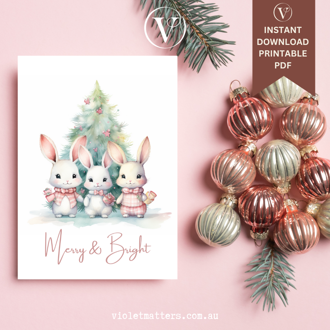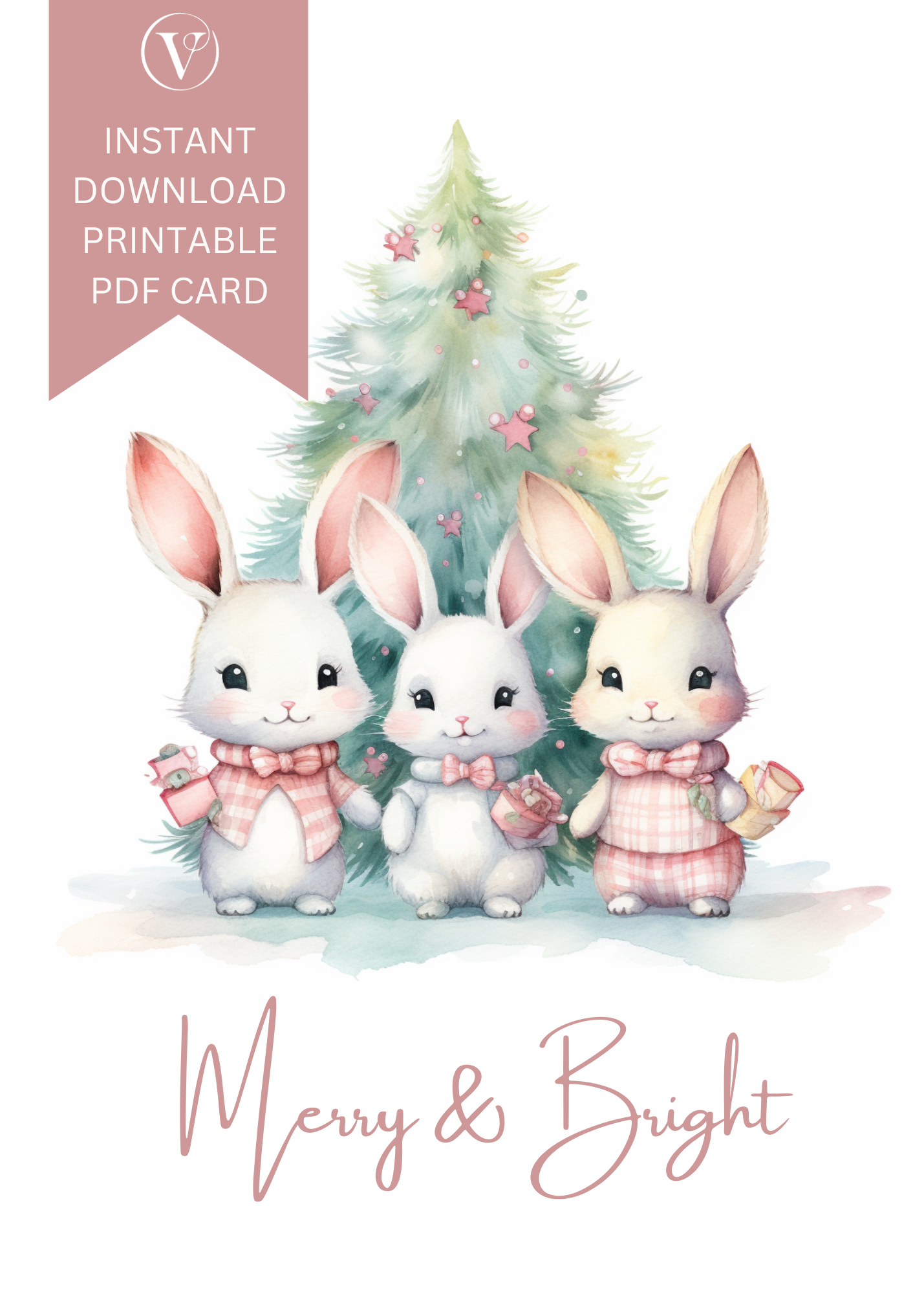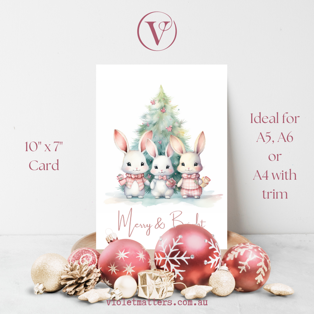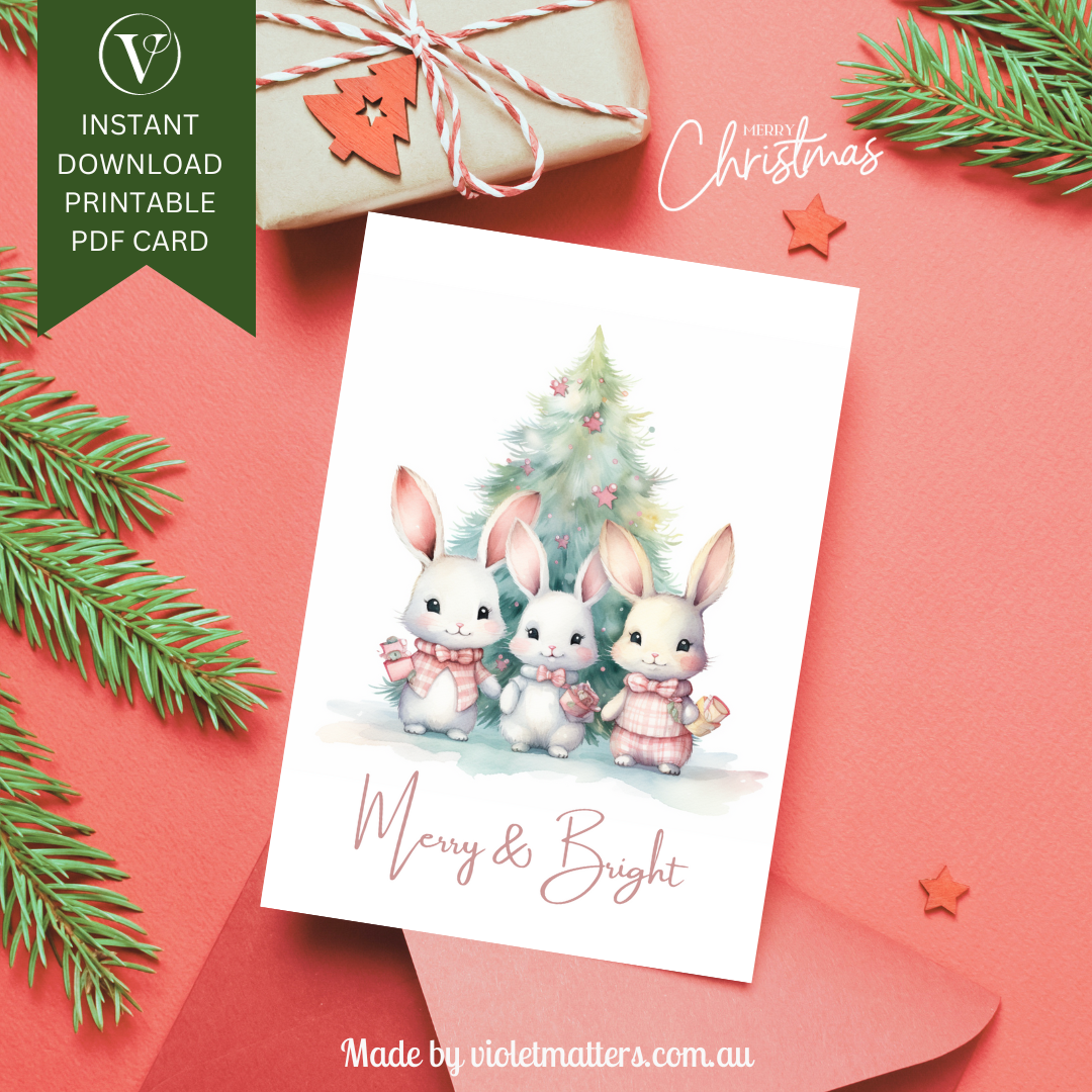 Introducing Our Delightful Christmas Bunnies Card - "Merry & Bright" A5 sized Printable Christmas Card. Our printable cards have been designed with value and convenience in mind. After purchase, download, print and you are ready to go. Our printable cards are made using a fusion of cutting-edge AI technology and our imagination and creative visions. Our cards are unique and original images created by us in our Adelaide studio. Please do not copy, they are intended for personal use only.
