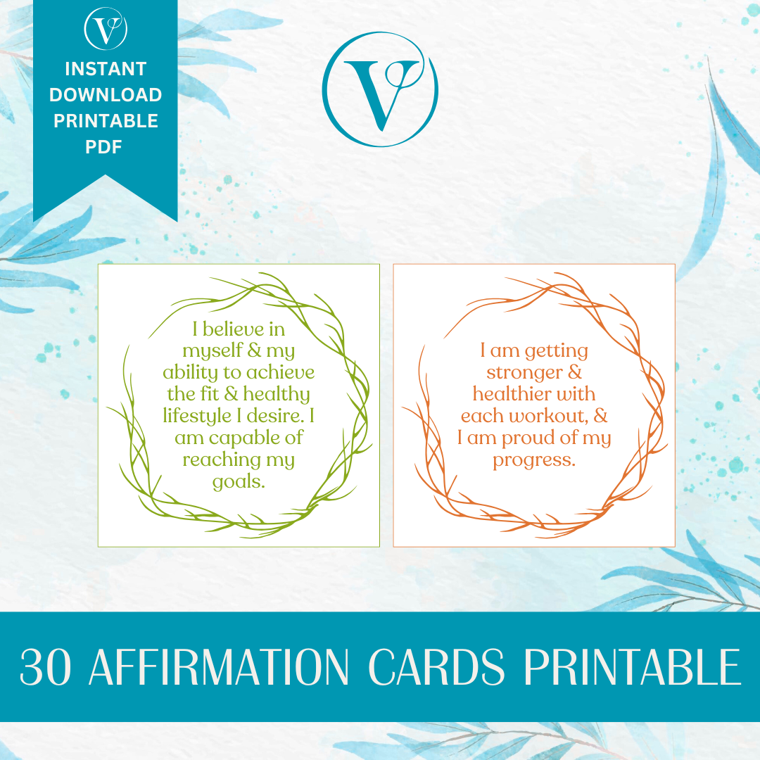 Printable Affirmation Card Set - Digital Download PDF - Getting Fit