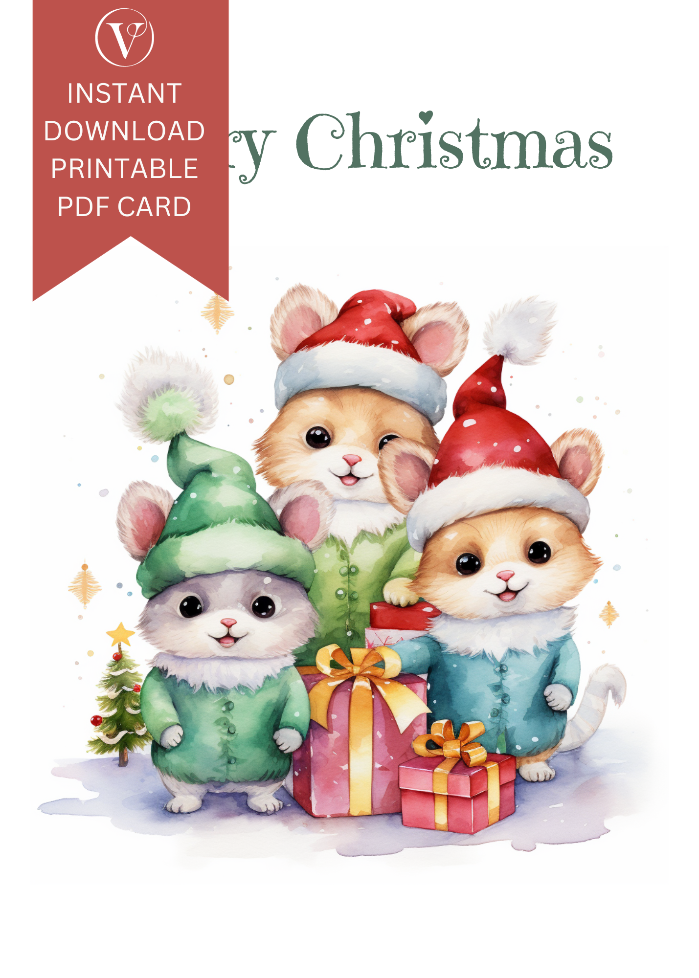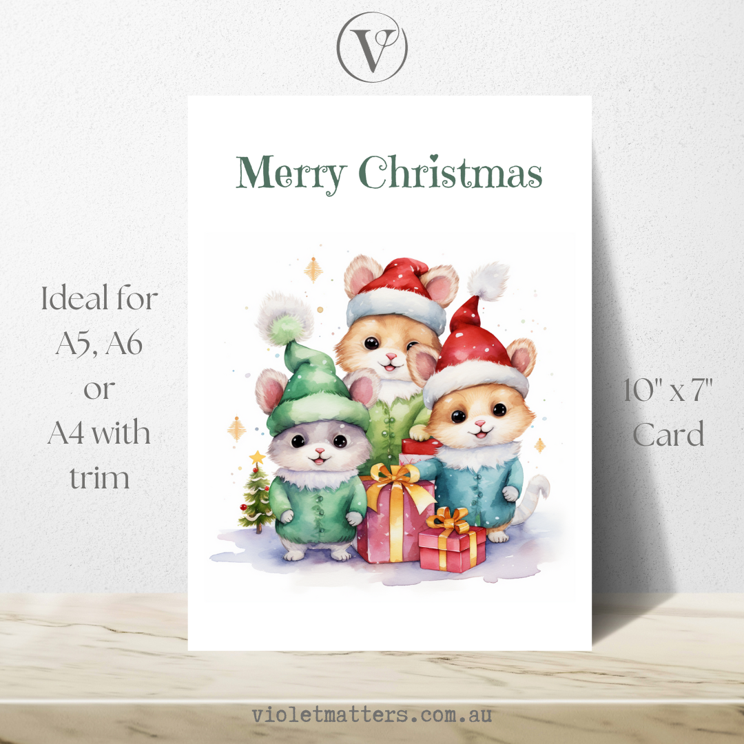Adorable Printable Squirrel Christmas A5 Card