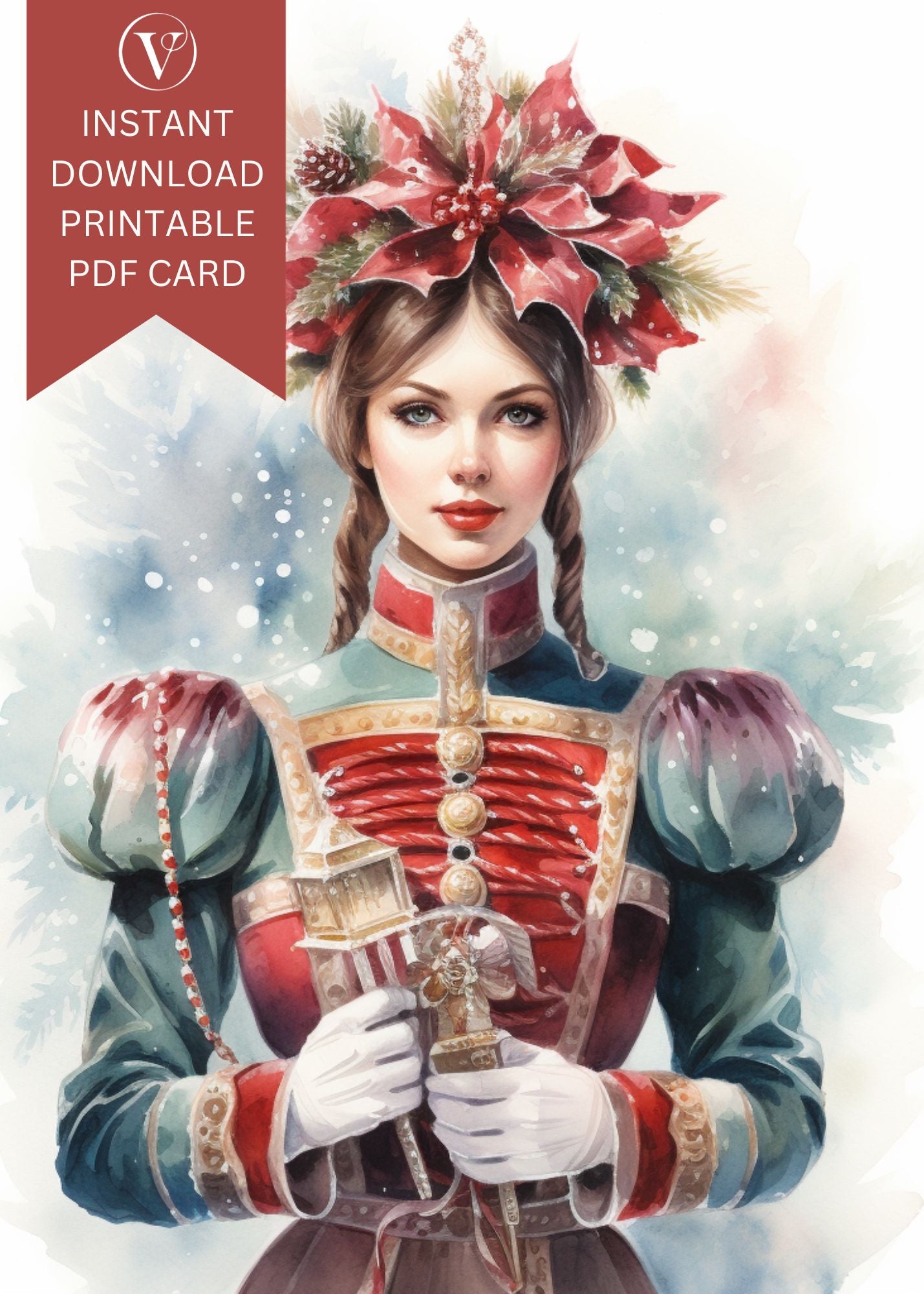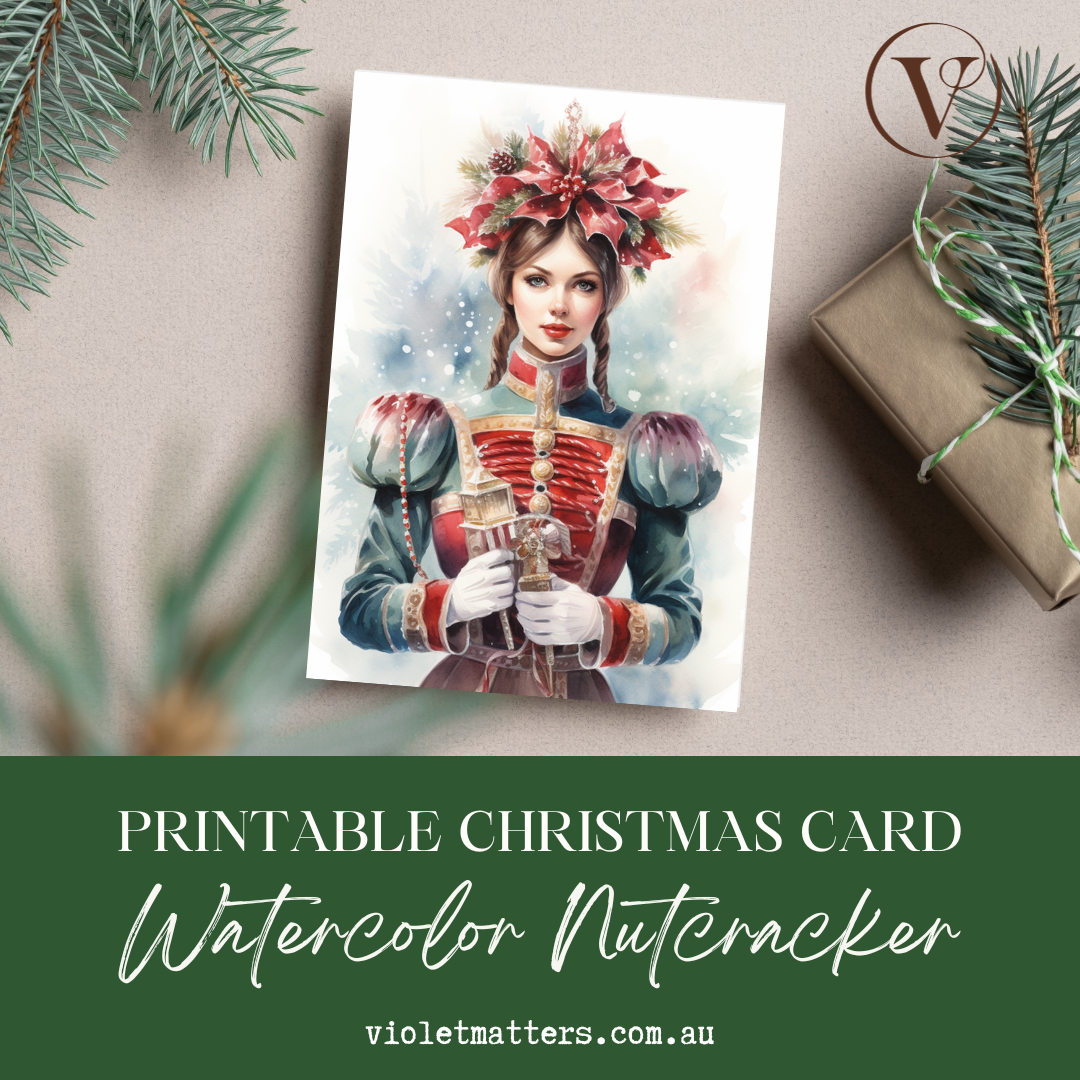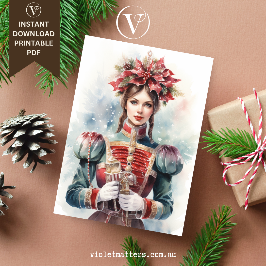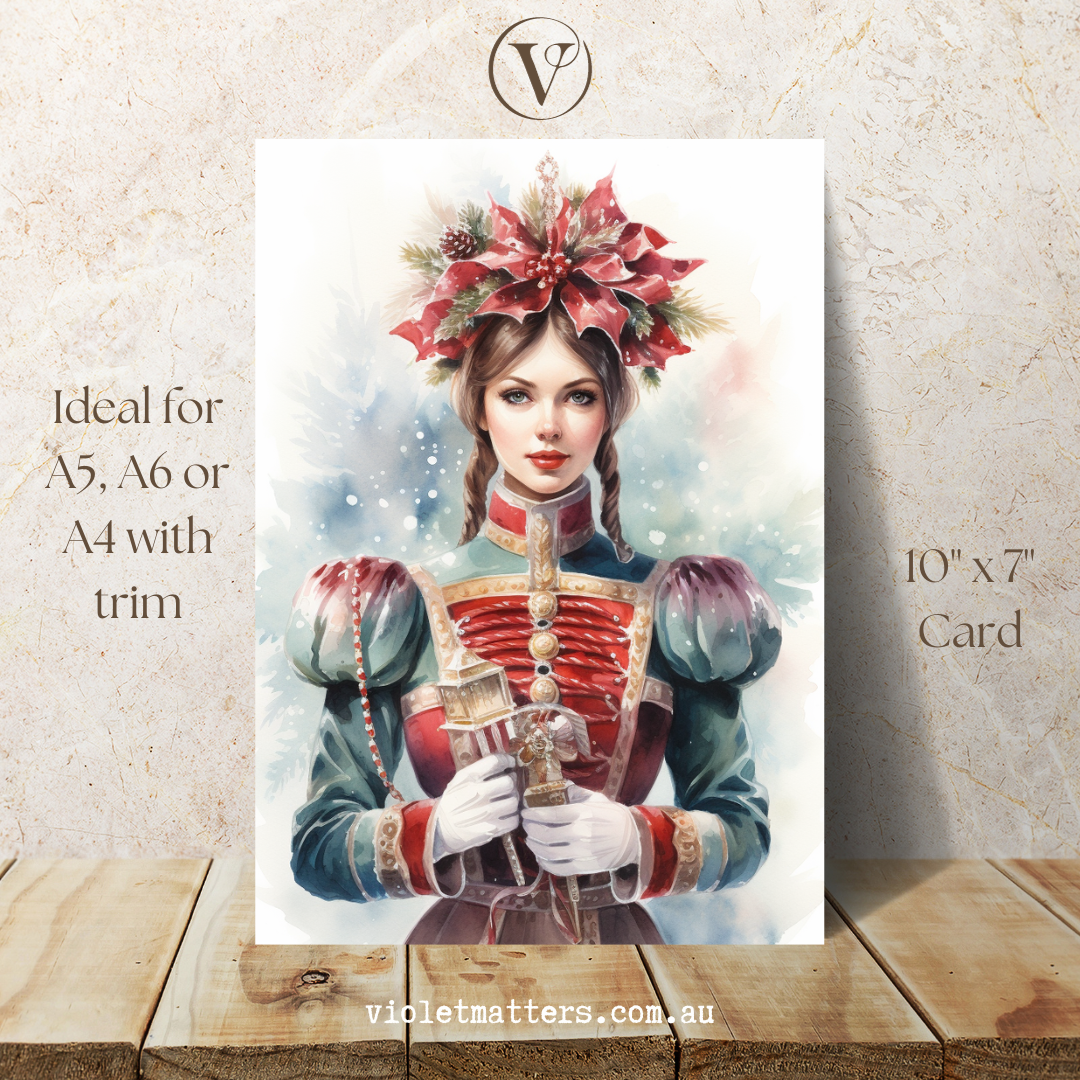 Beautiful Nutcracker Watercolor Style Printable Christmas A5 Card