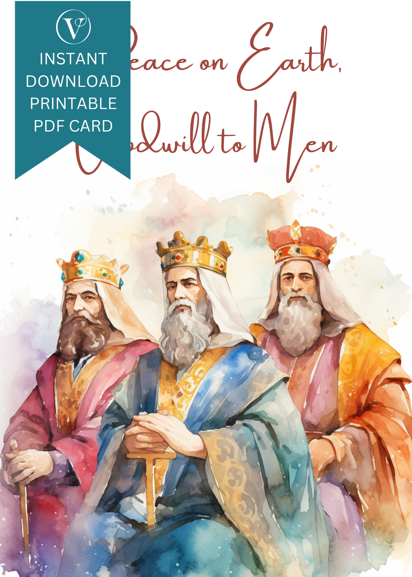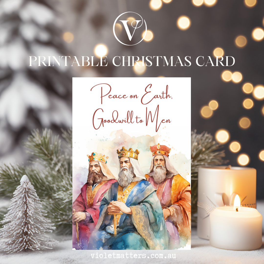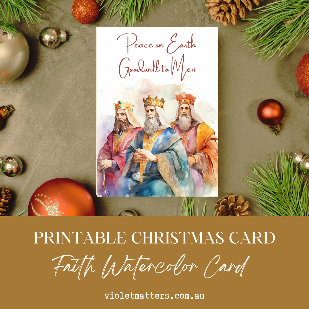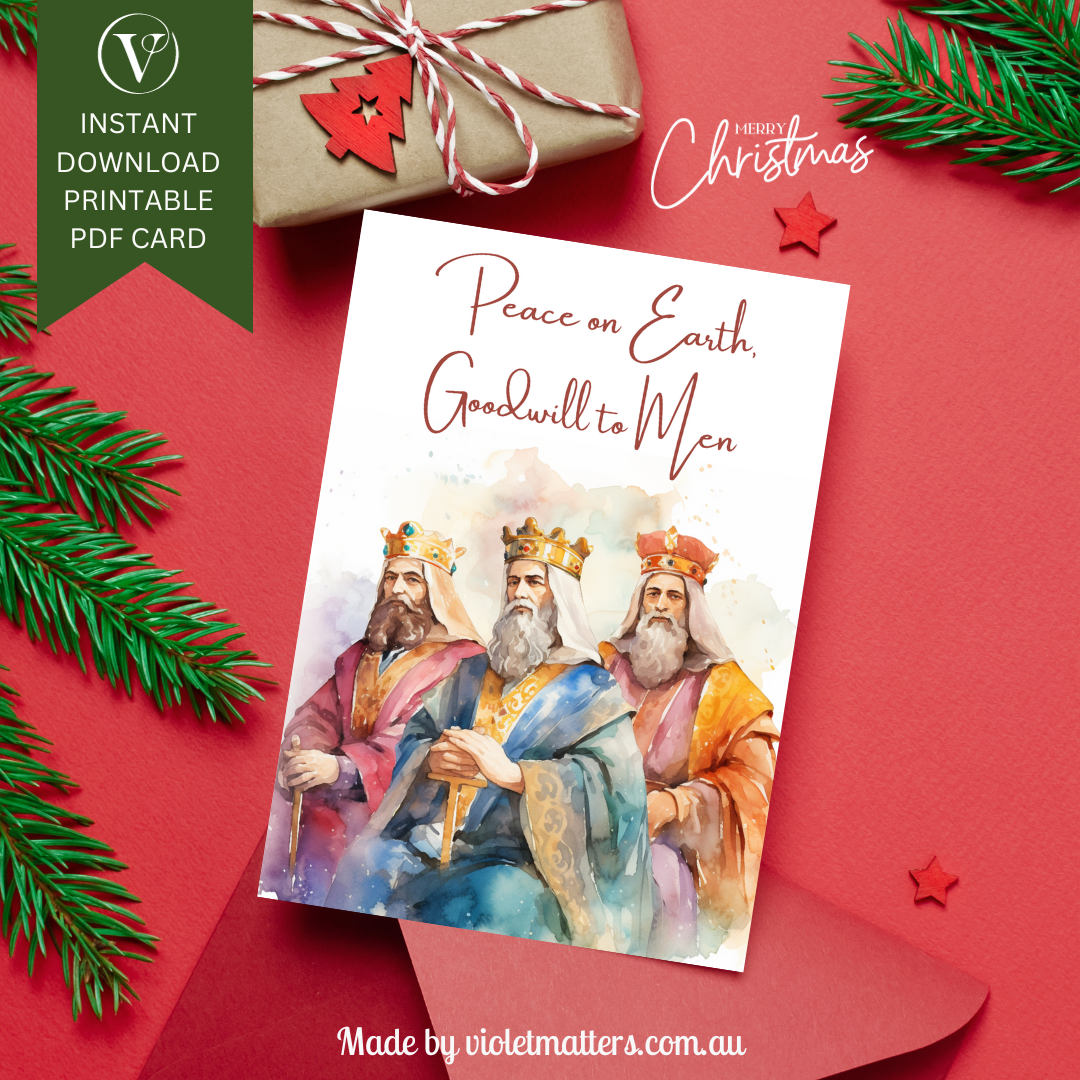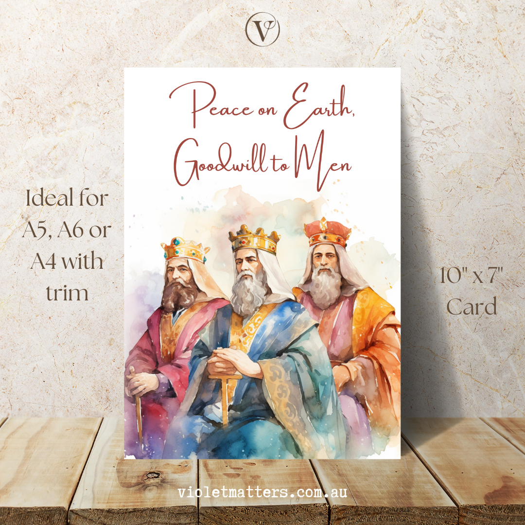 Elegant Three Wisemen Watercolor Printable Christmas A5 Card