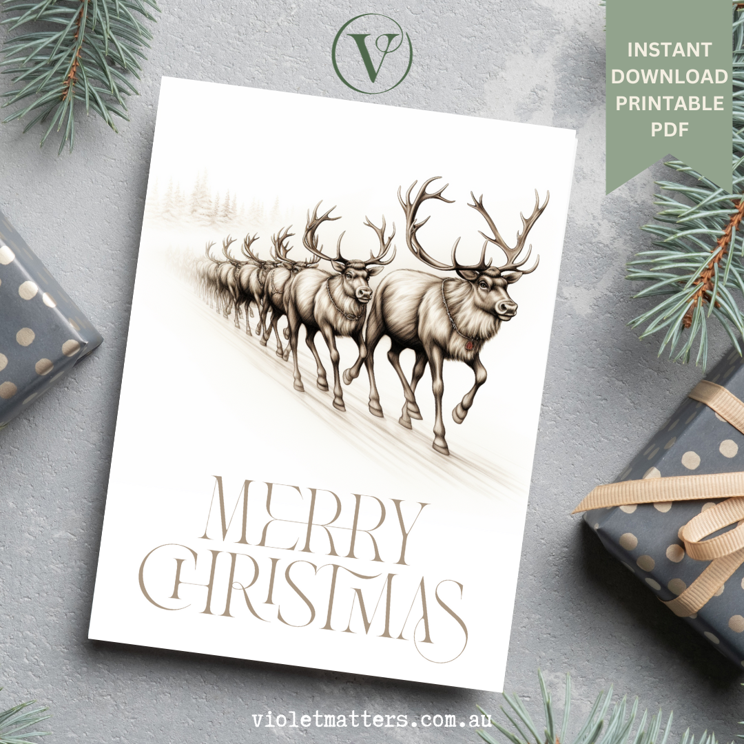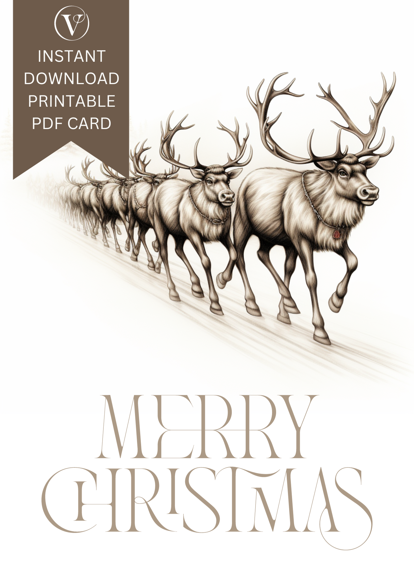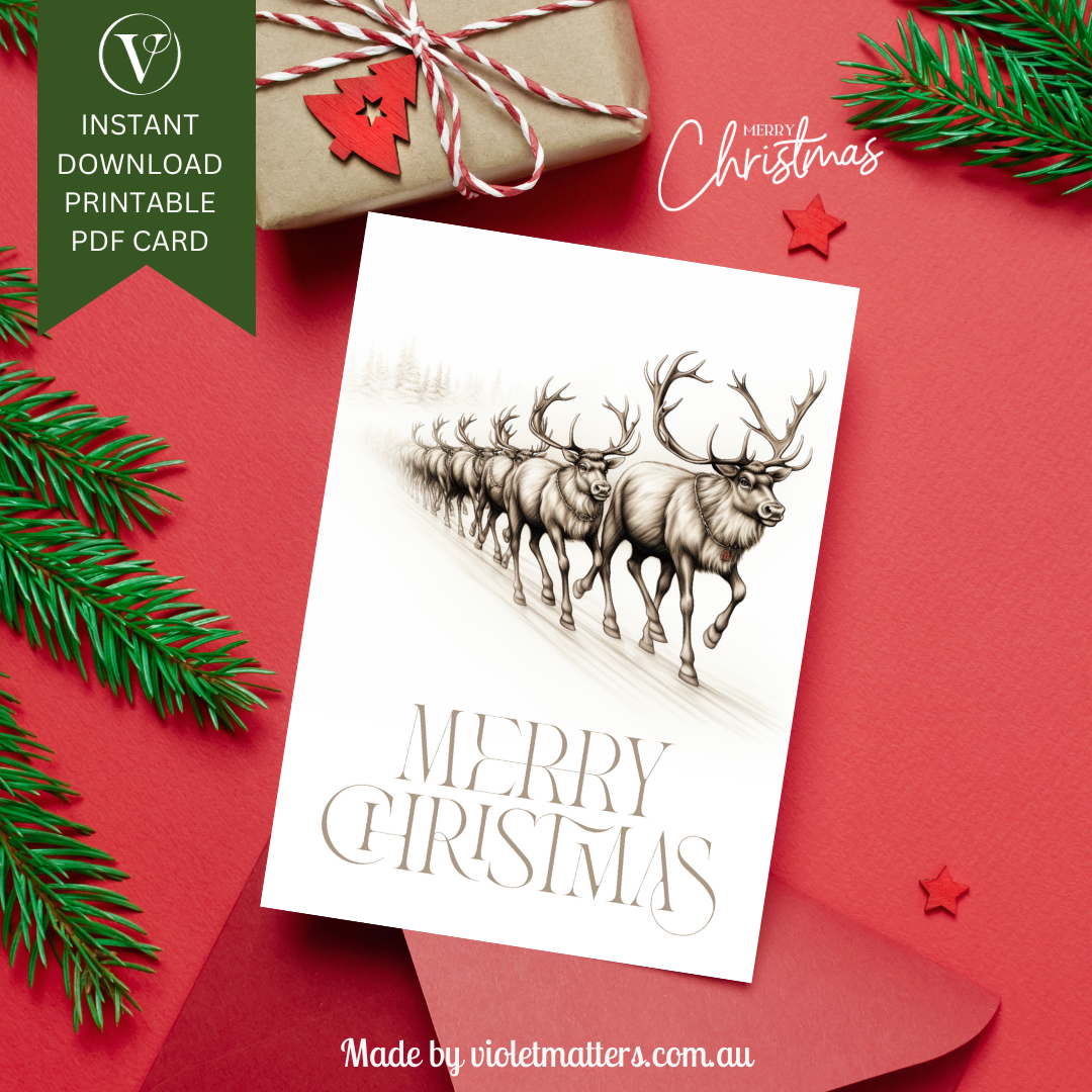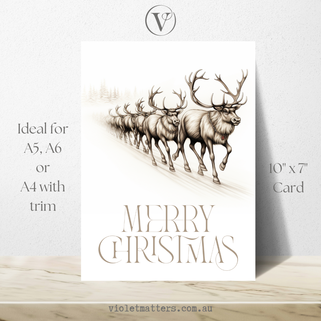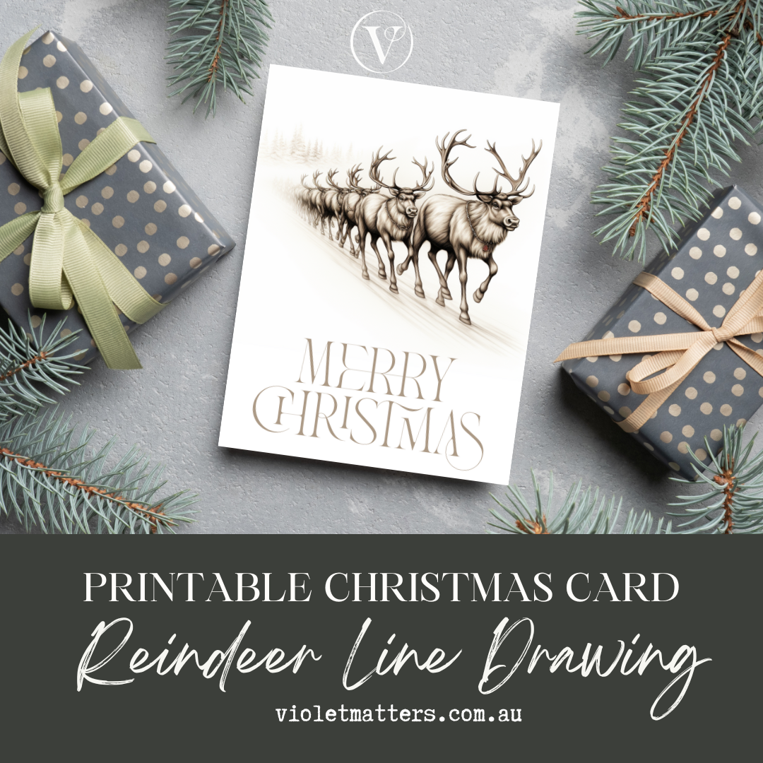 Printable Digital Christmas A5 Card - Beautiful Reindeer's Line Drawing