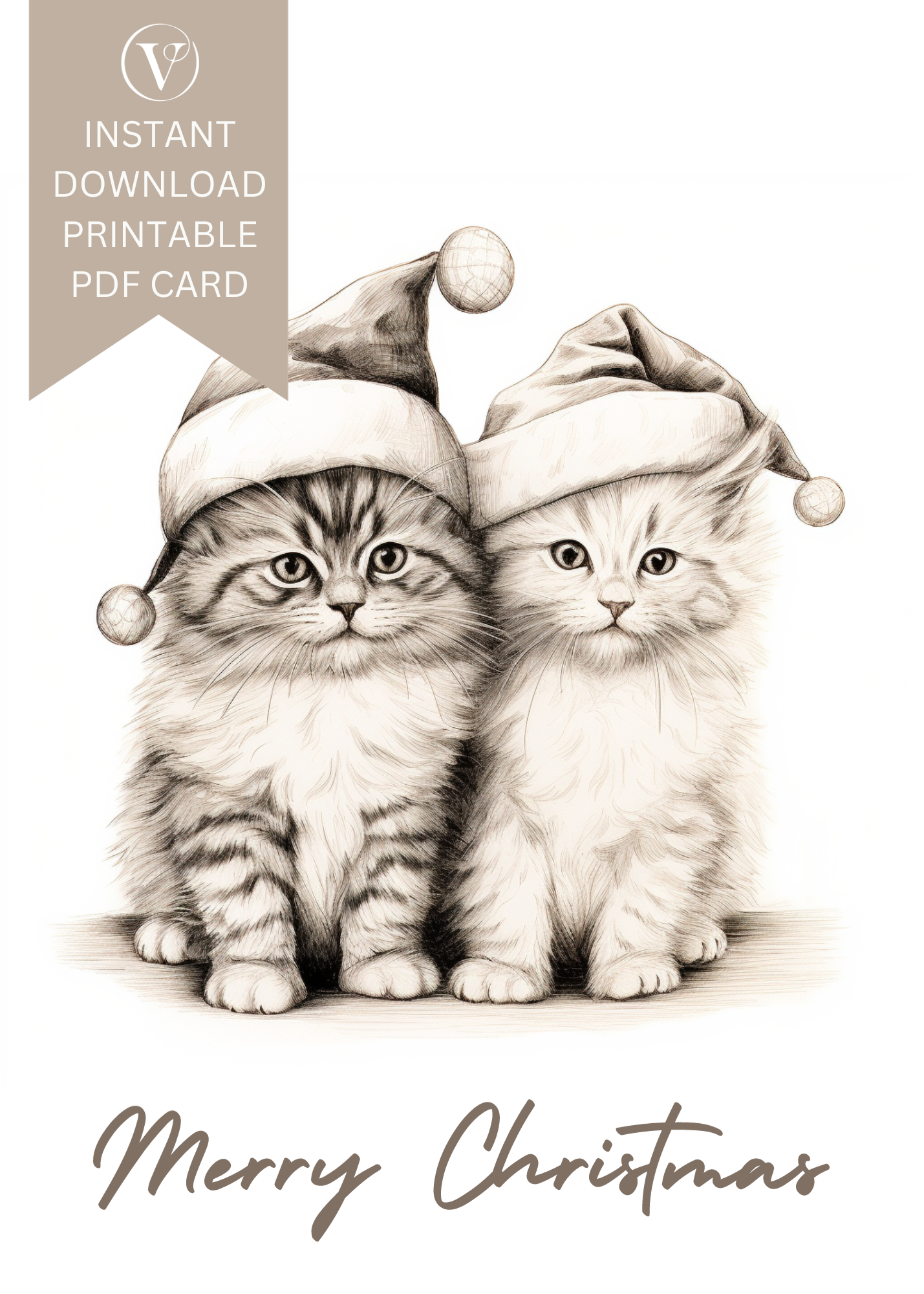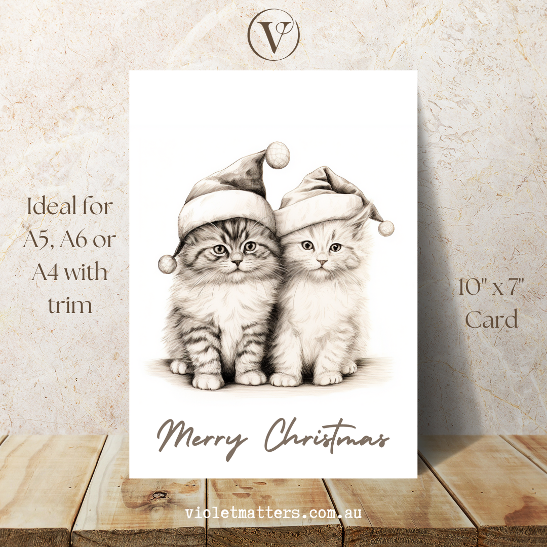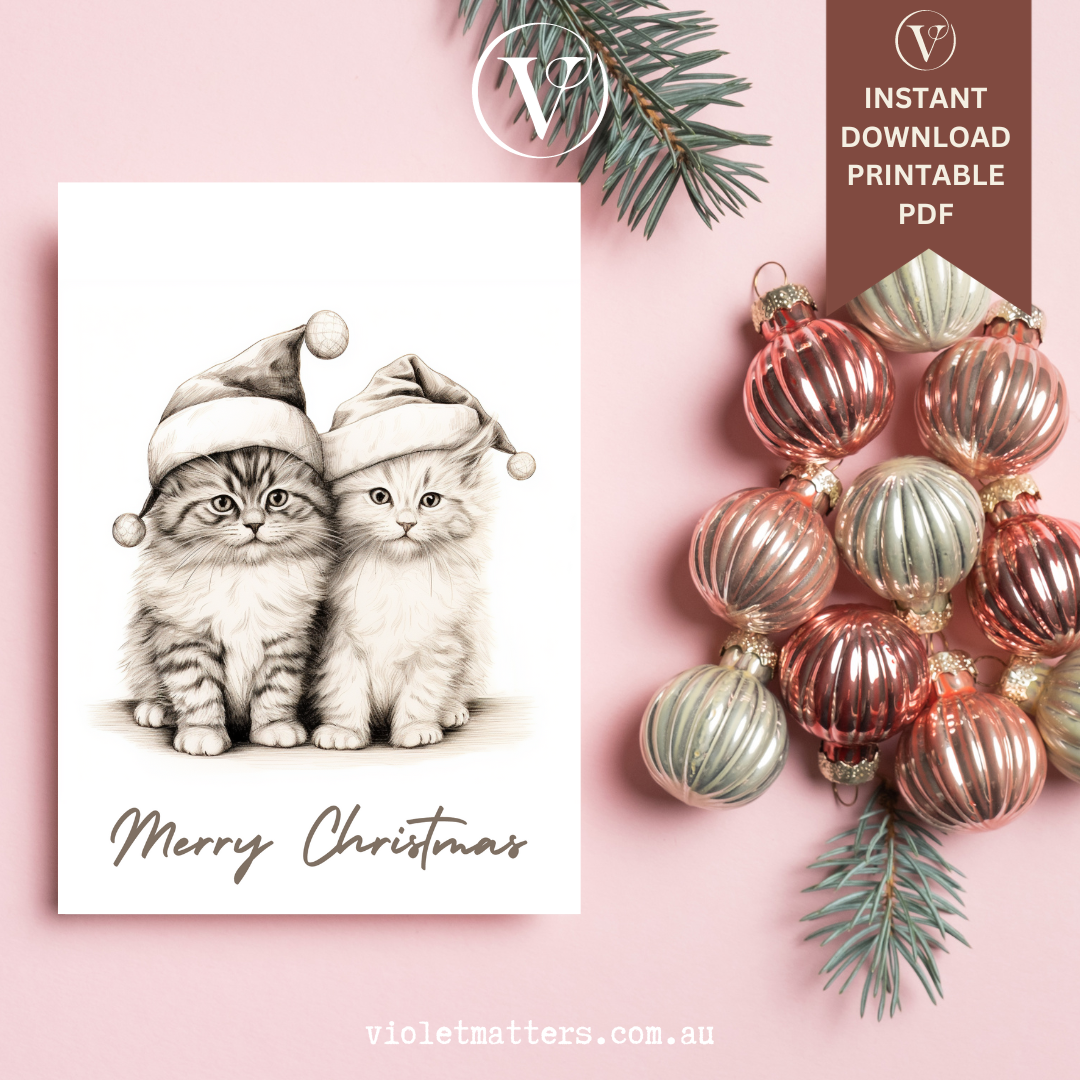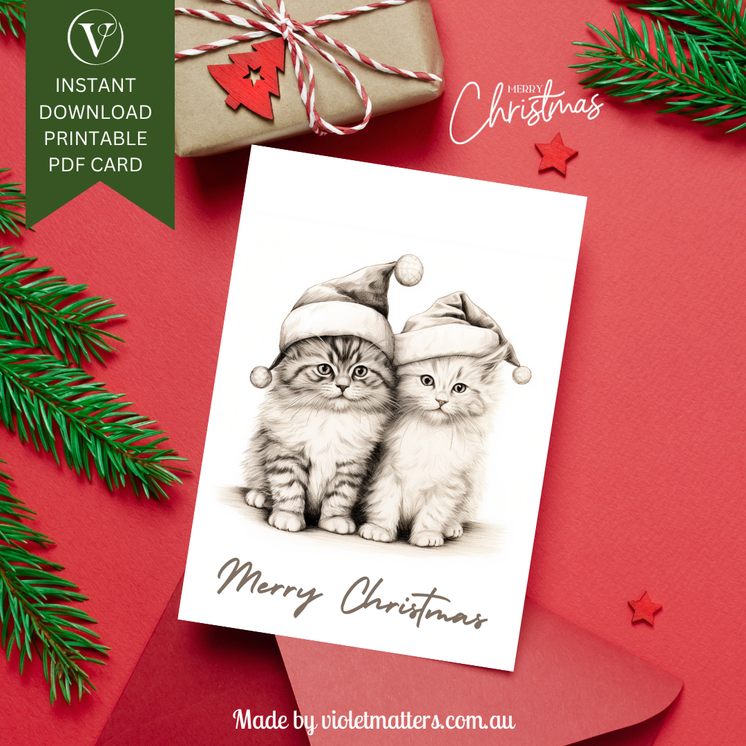 Merry Catmas Printable Digital Christmas A5 Card - Cute Kittens in Hats