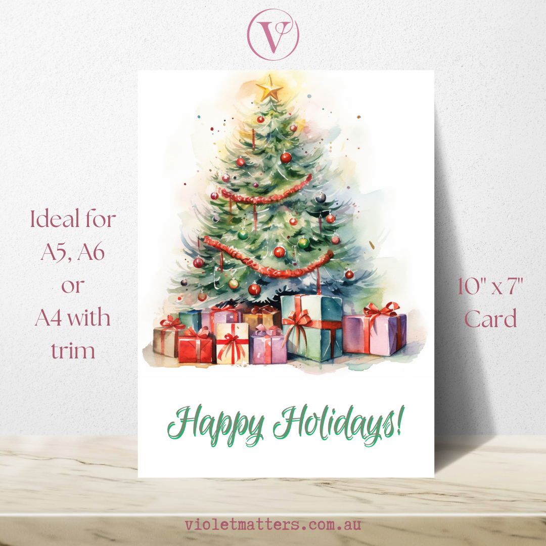 Charming Happy Holidays Printable Watercolor Christmas Tree A5 Card