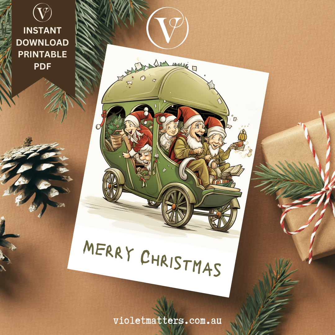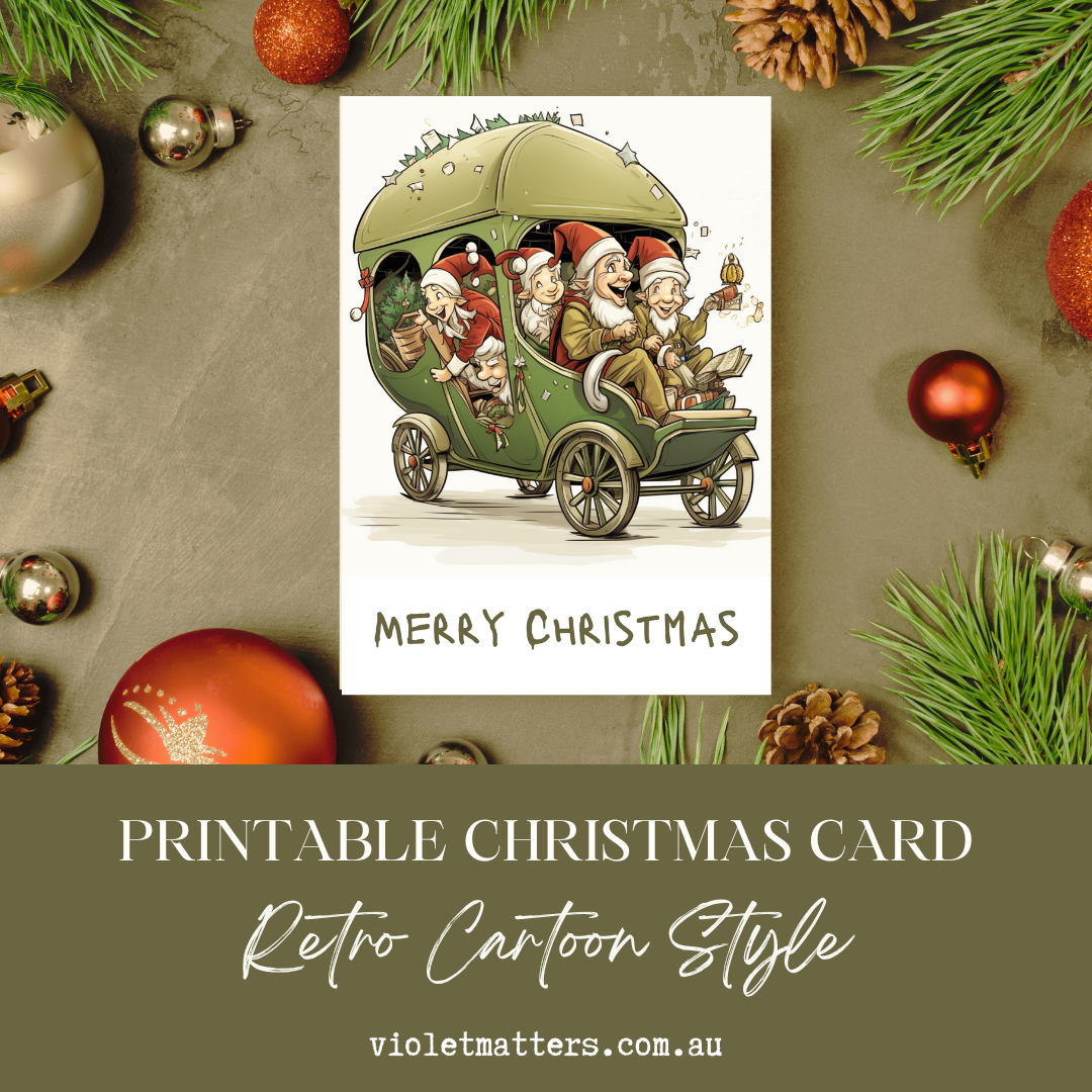 Retro Comic Cartoon Style Printable Christmas A5 Card