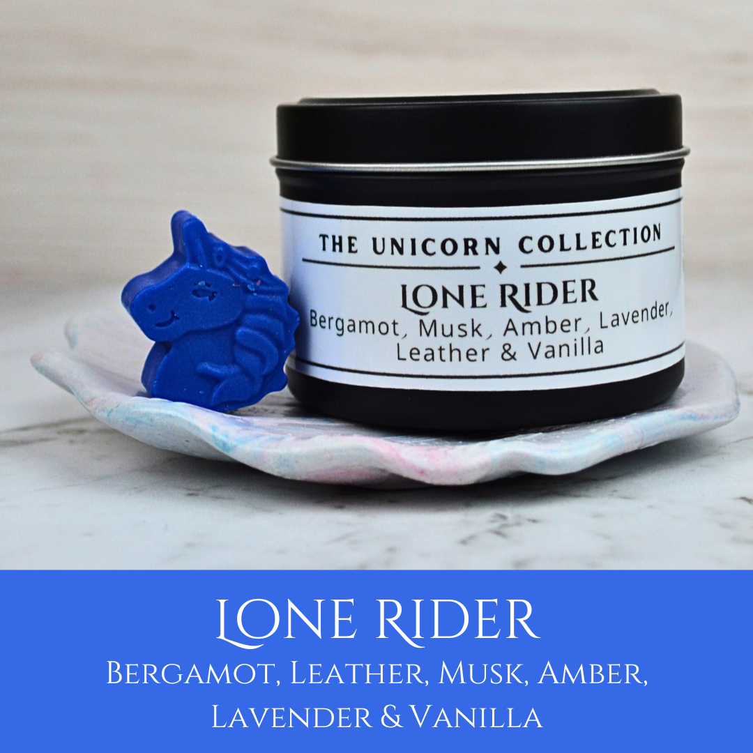 Lone Rider: Bergamot, Leather, Musk, Amber, Lavender & Vanilla - Eco Soy Wax Melt Tin