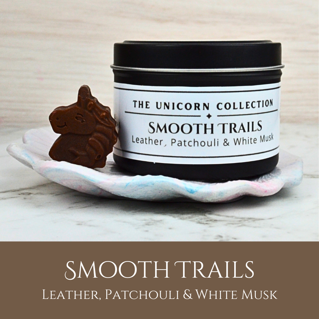 Smooth Trails: Leather, Patchouli & White Musk - Eco Soy Wax Melt Tin