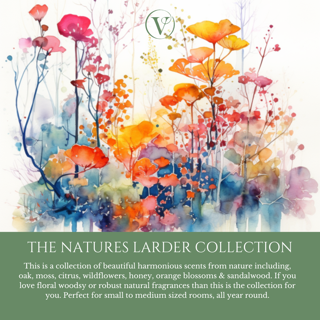 This is a collection of beautiful harmonious scents from nature including, oak, moss, citrus, wildflowers, honey, orange blossoms & sandalwood. If you love floral woodsy or robust natural fragrances than this is the collection for you. Perfect for small to medium sized rooms, all year round.