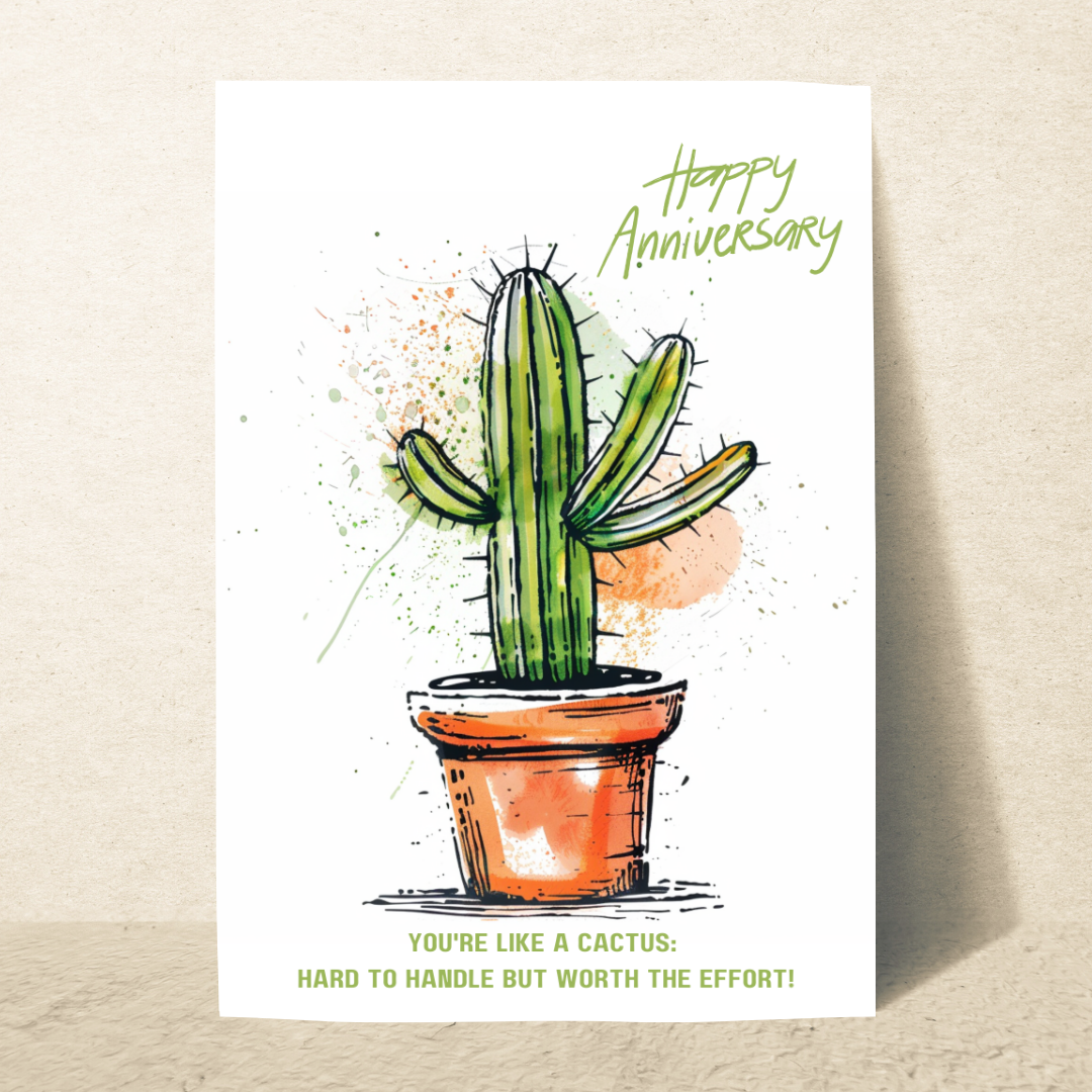 Fun Blank A5 Printable Happy Anniversary Cactus Card