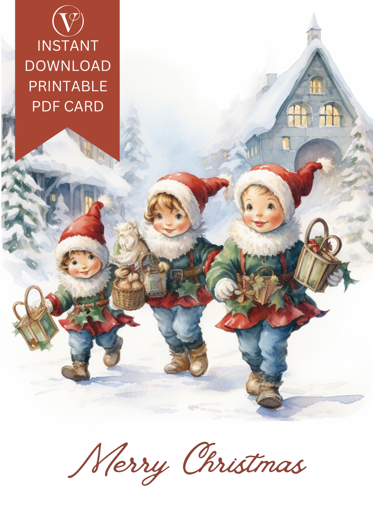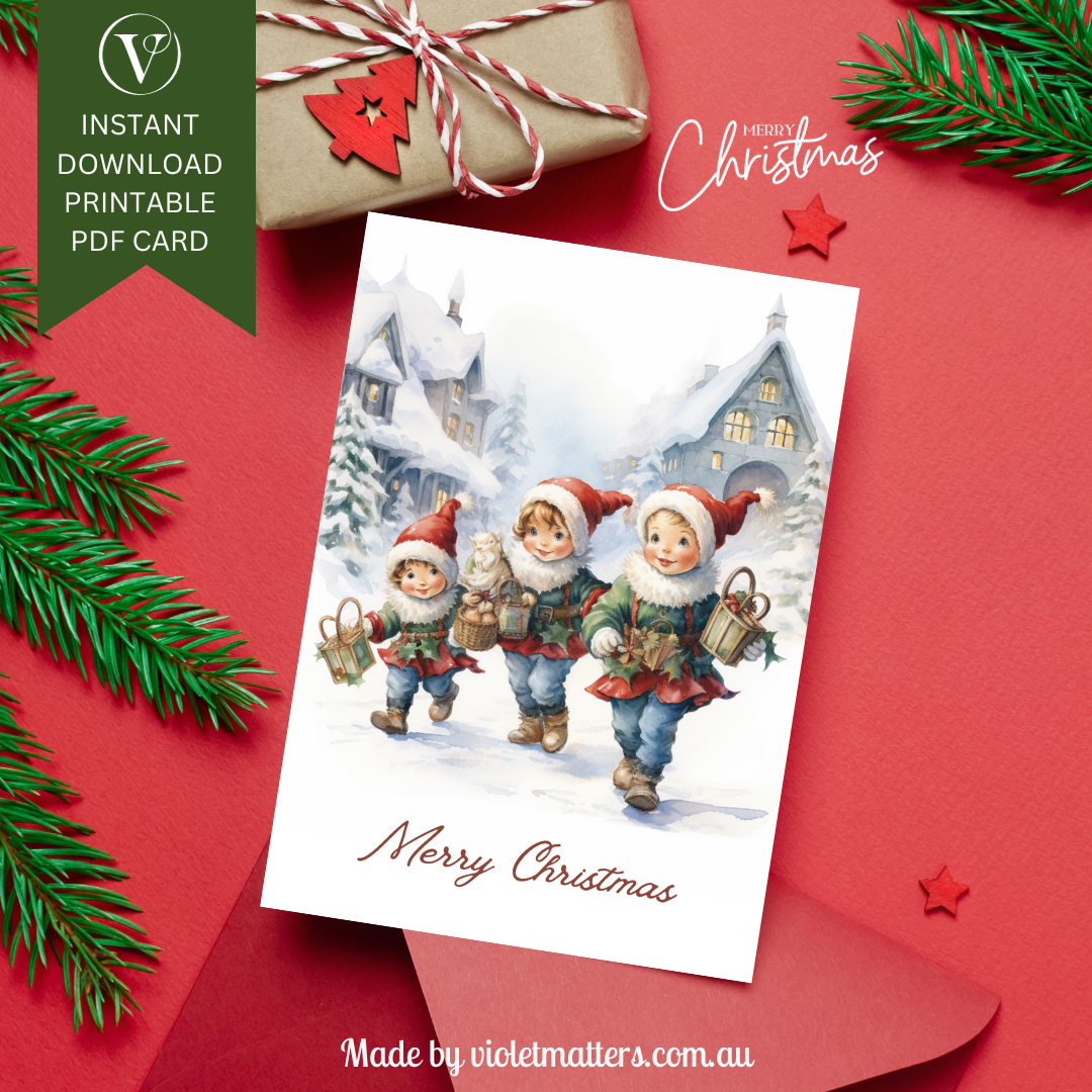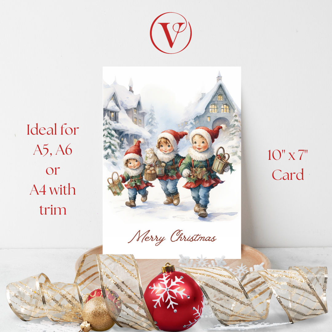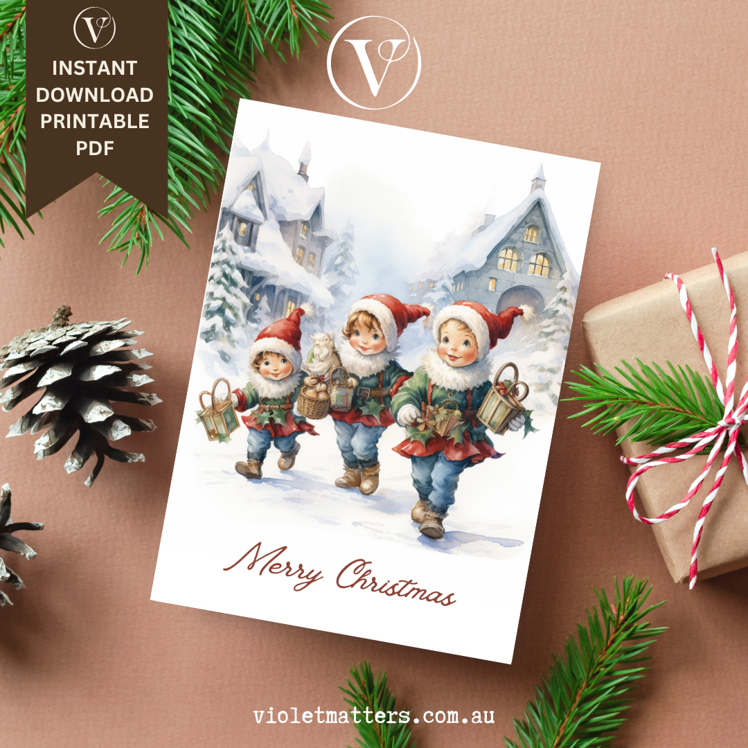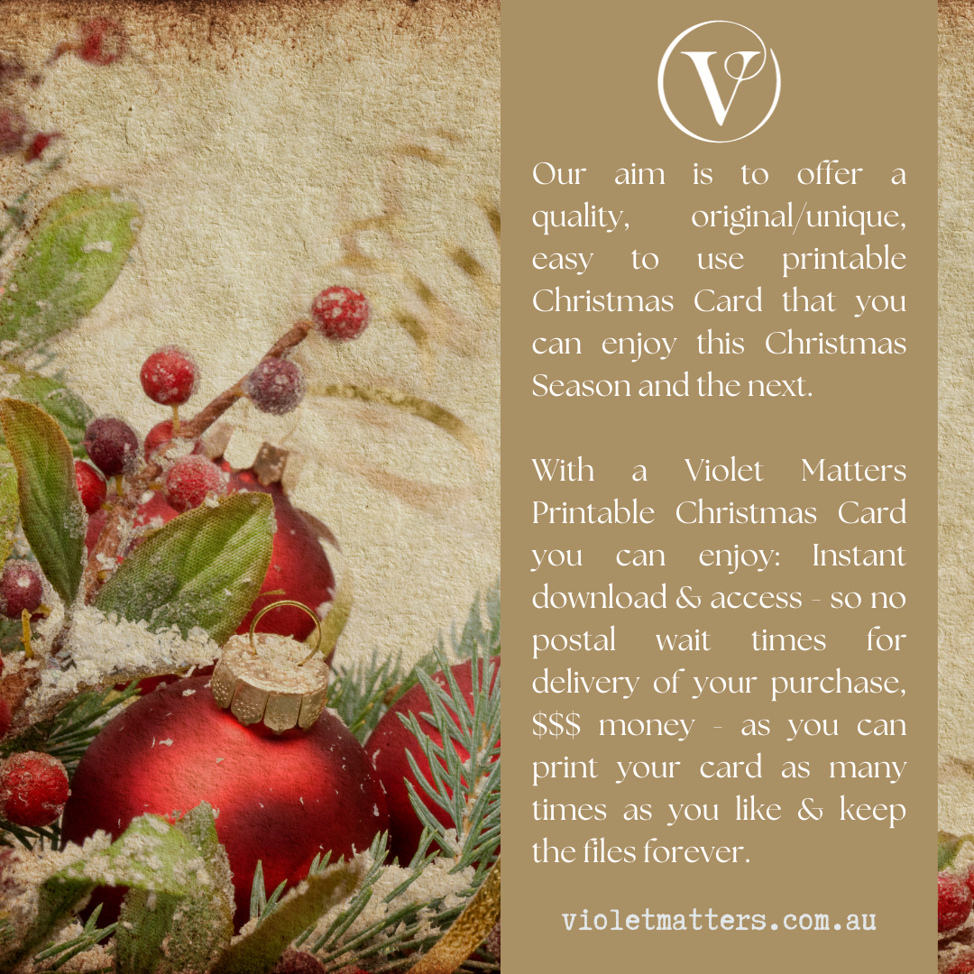 Vintage Style Merry Christmas Printable Christmas A5 Card