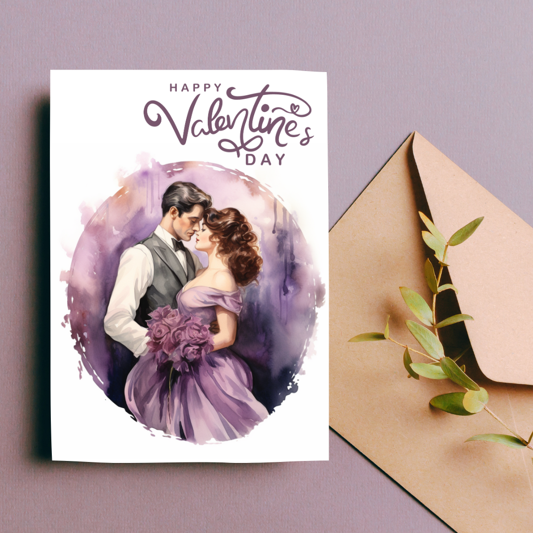 Romantic Victorian Era Inspired Blank A5 Printable Valentine's Day Card